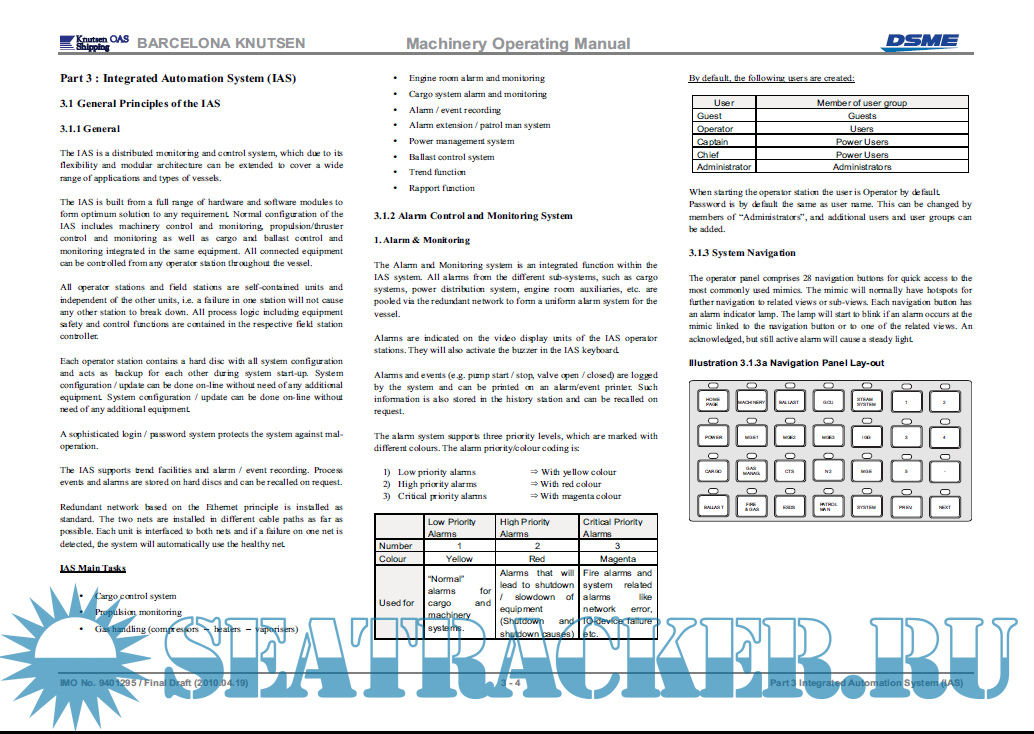 LNGC Barcelona Knutsen - IMO 9401295 – Machinery Operating Manual - DSME [2010, PDF]