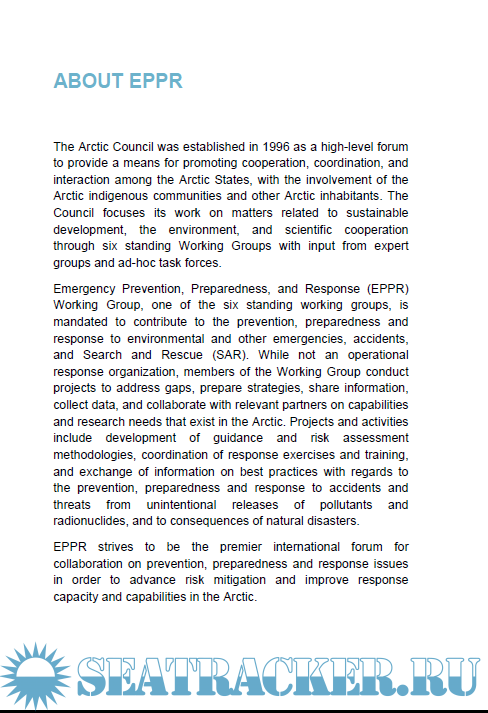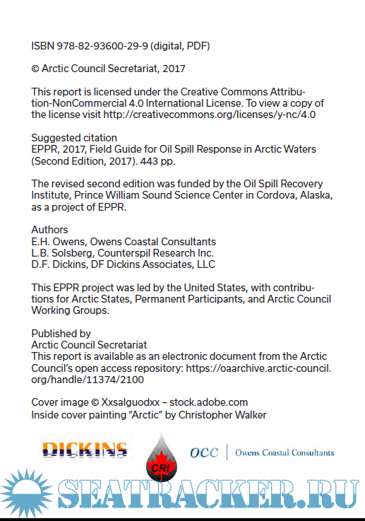 Year: 2017 Language: english Author: Owens Coastal Consultants - Counterspil Research Inc.- DF Dickins Associates Genre: Guide Format: PDF Quality: eBook Pages count: 446 Description: The Arctic Council was established in 1996 as a high-level forum to provide a means for promoting cooperation, coordination, and interaction among the Arctic States, with the involvement of the Arctic indigenous communities and other Arctic inhabitants. The Council focuses its work on matters related to sustainable development, the environment, and scientific cooperation through six standing Working Groups with input from expert groups and ad-hoc task forces.