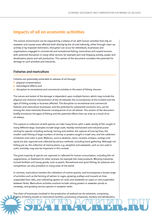 Description: The increasing demands of populations around the globe have led to the sea and coastlines being used for increasingly intensive economic and commercial activities, as a source of food, a means of trade and for leisure activities. Despite the best efforts of those involved in a response, a release of oil at sea may interrupt such activities and lead to economic losses for the variety of organizations and individuals involved. Compensation for such losses may be available in various circumstances, dependent upon a number of factors, primarily the source of the release and the legislation in place in the country in which the pollution damage or injury occurs.