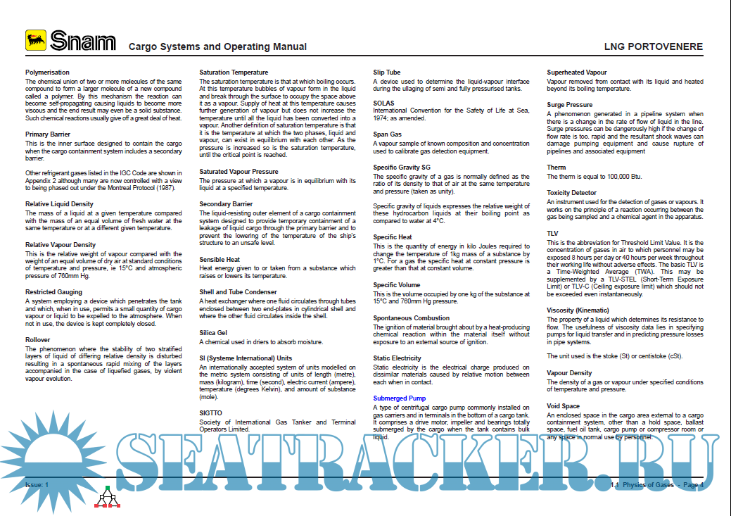 Year: 1997 Language: english Author: WMT Genre: Manual Format: PDF Quality: eBook Pages count: 252 Description: PORTOVENERE is a LNG carrier built in 1997 by FINCANTIERI TRIESTE - TRIESTE, GENOA Shipyard ITALY. Currently sailing under the flag of Singapore. Formerly also known as LNG PORTOVENERE. It's gross tonnage is 46555 tons DWT 35760 tons - Cargo Tanks capacity 65299 cm.