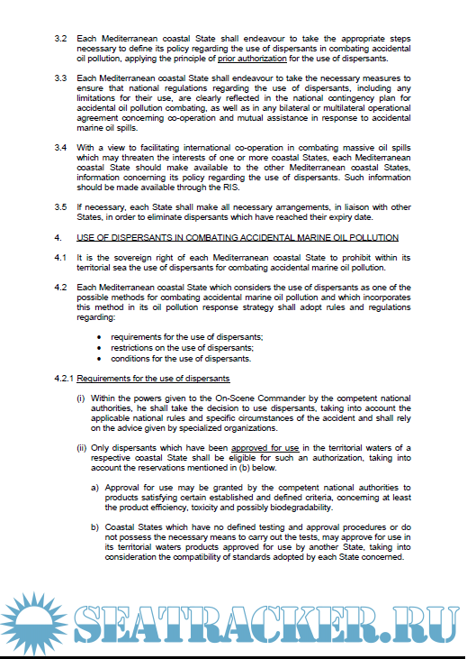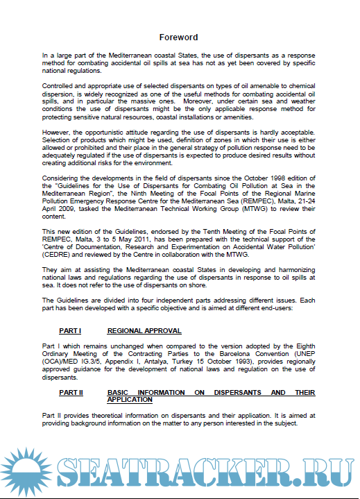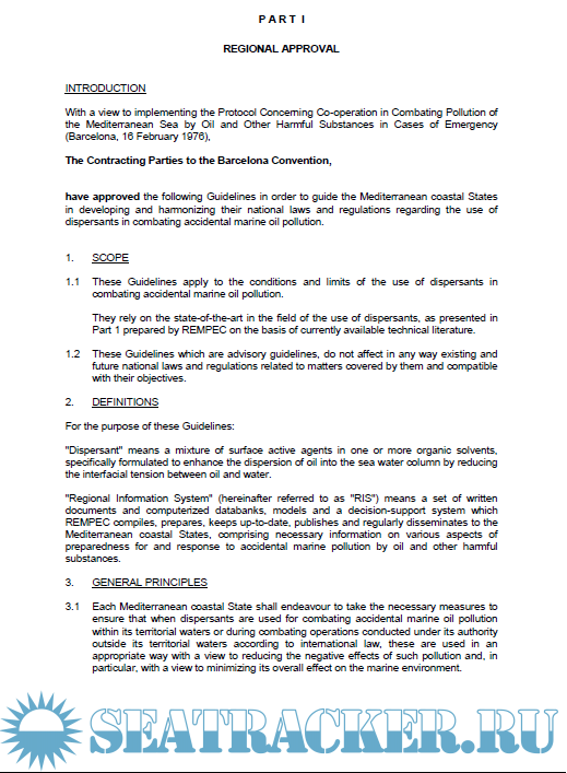 Description: In a large part of the Mediterranean coastal States, the use of dispersants as a response method for combating accidental oil spills at sea has not as yet been covered by specific national regulations.