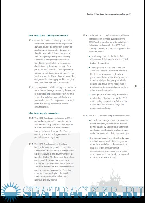 Year: 2019 Language: english Author: IOPC FUND Genre: Guide Format: PDF Quality: eBook Pages count: 45 Description: The compensation regime was originally established in 1978 and is now based on two Conventions: the 1992 International Convention on Civil Liability for Oil Pollution Damage (1992 Civil Liability Convention) and the 1992 International Convention on the Establishment of an International Fund for Compensation for Oil Pollution Damage (1992 Fund Convention). A Protocol to the 1992 Fund Convention was adopted in 2003, which established a Supplementary Fund (Supplementary Fund Protocol).