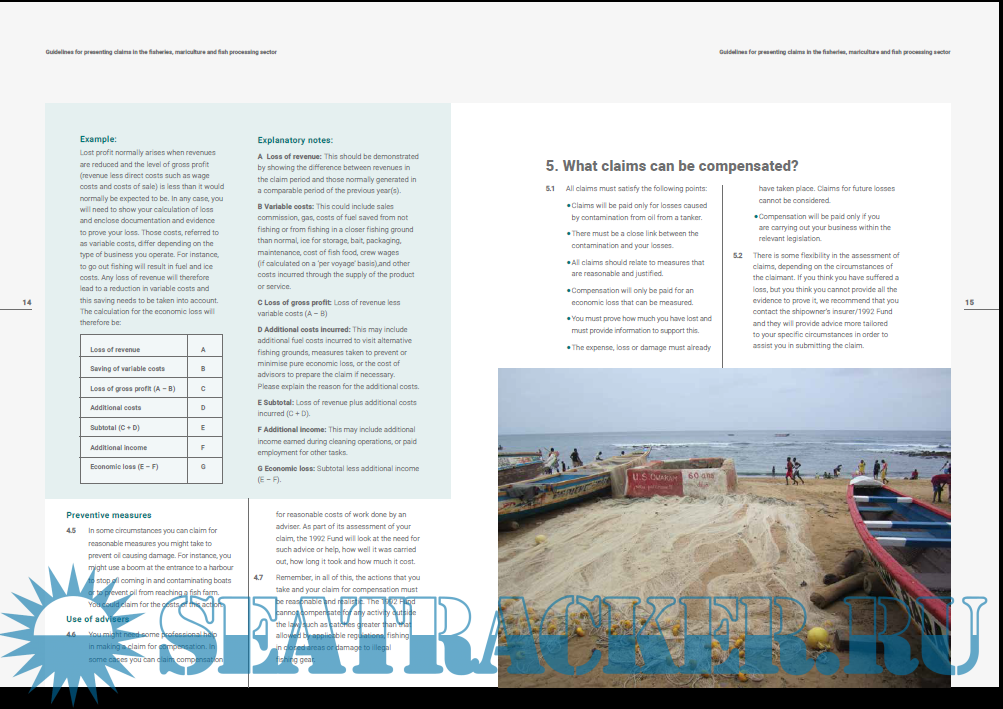 Year: 2019 Language: english Author: IOPC FUND Genre: Guide Format: PDF Quality: eBook Pages count: 15 Description: Anybody who has suffered losses due to oil pollution in one of the Member States of the 1992 Fund caused by an oil tanker can claim compensation for these losses. In this booklet, however, only claims from the fisheries sector (fish catching, fish farming, mariculture and other businesses related to fishing) are considered
