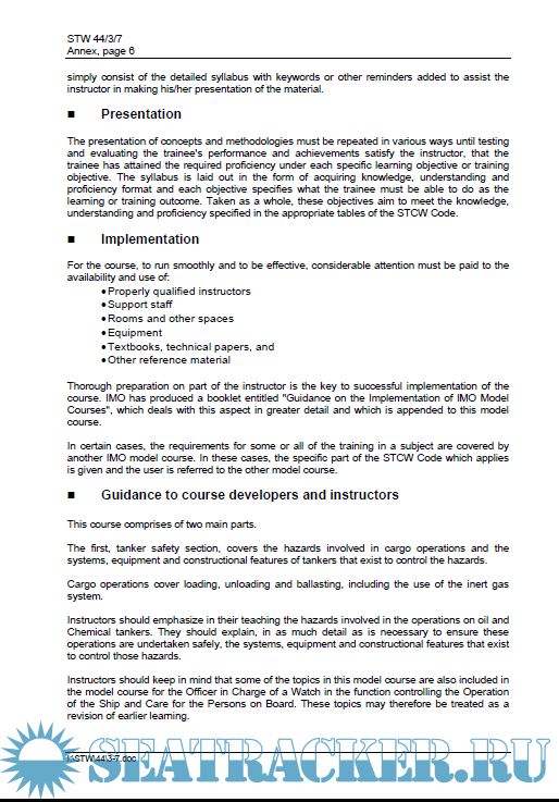 IMO - Model Course 1.02 Advanced Training for Oil Tanker Cargo Operations
