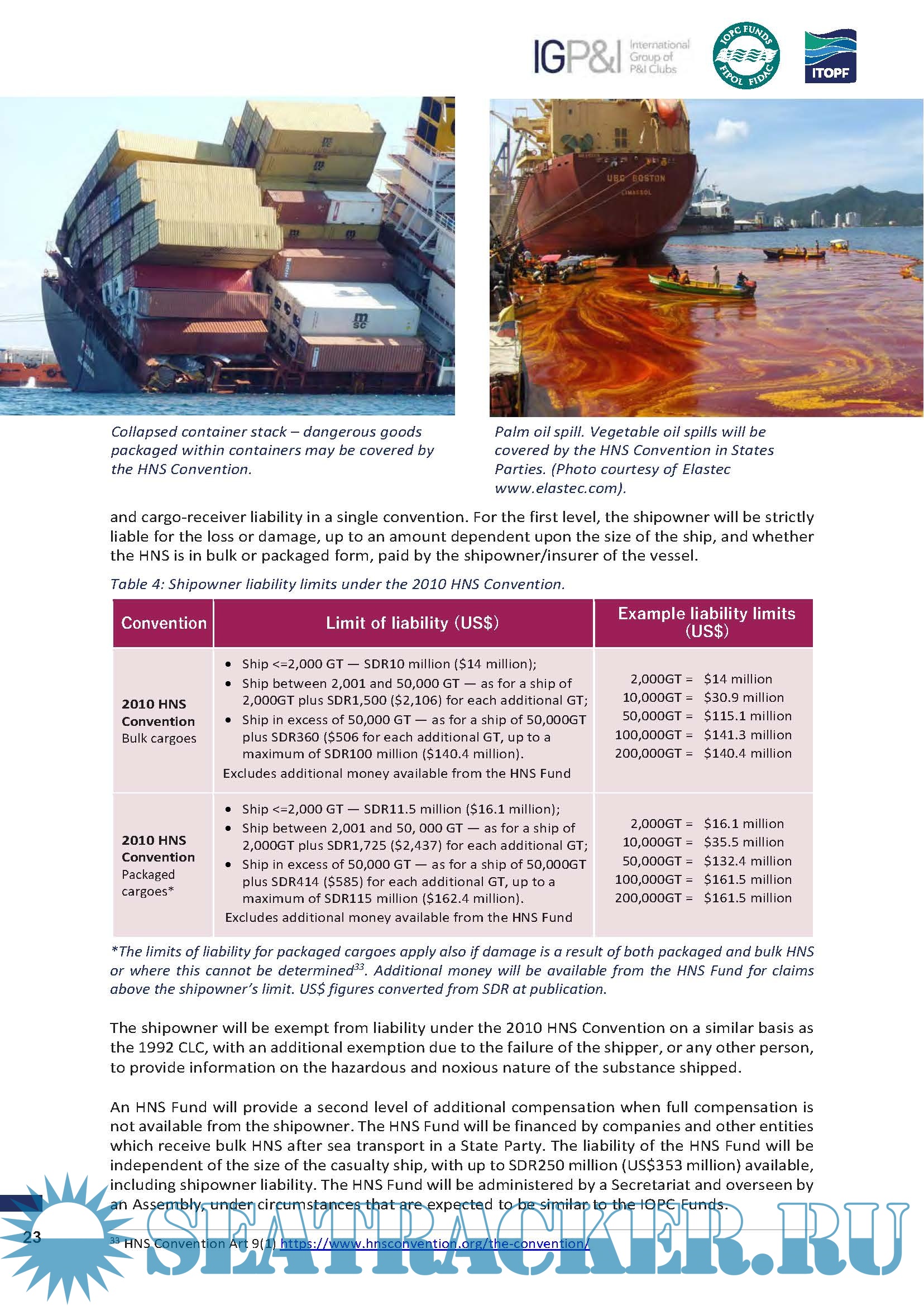 Description: This booklet is intended as an introduction to the subject of compensation for ship-source oil spills rather than as an authoritative account of each compensation regime. It is based on the joint publishers’ experience of applying the provisions of these compensation regimes to incidents around the world over the past five decades, and the assessment of associated claims for compensation. For a more detailed description of the compensation regimes in place, the reader is referred to the references listed in the appendix to this booklet.