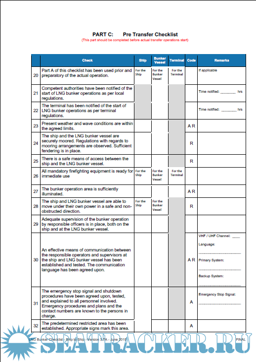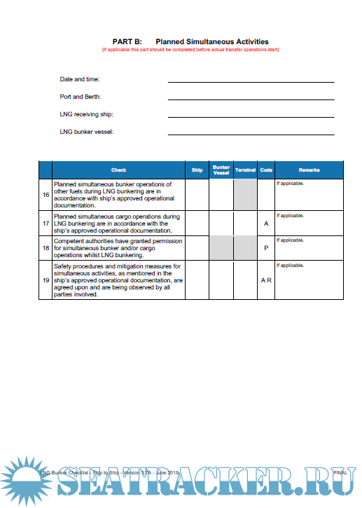 IAPH - LNG Bunker Checklist - Ship to Ship - Version 3.7A - June 2019