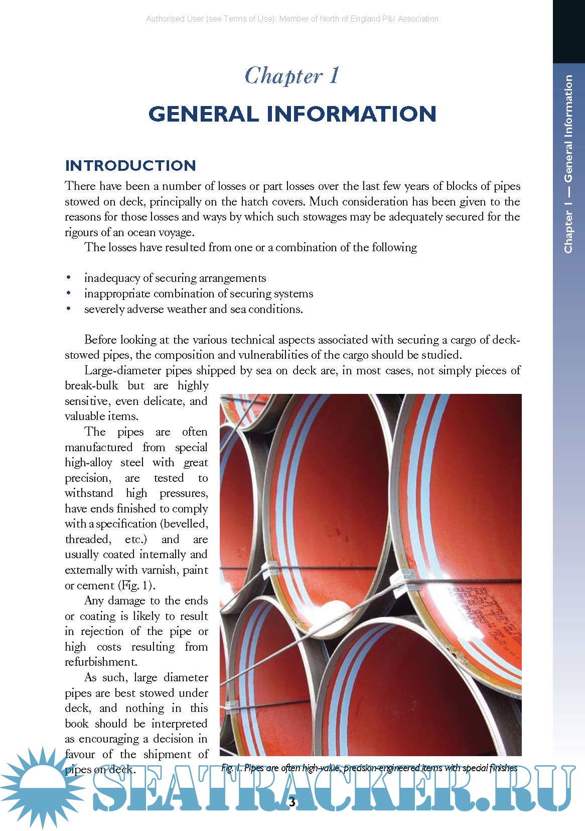 Before looking at the various technical aspects associated with securing a cargo of deck stowed pipes, the composition and vulnerabilities of the cargo should be studied. Large diameter pipes shipped by sea on deck are, in most cases, not simply pieces of break bulk but are highly sensitive and valuable items.