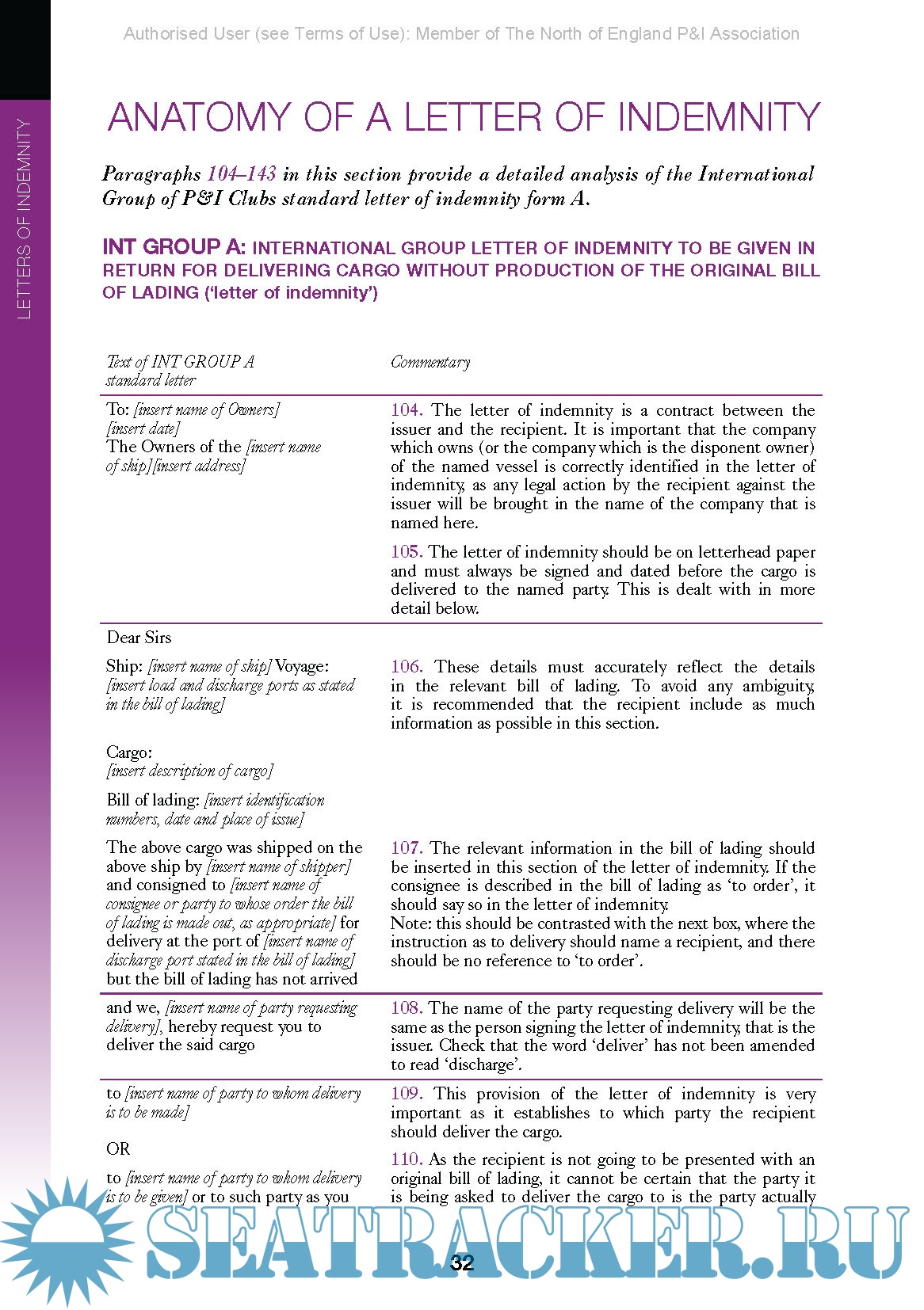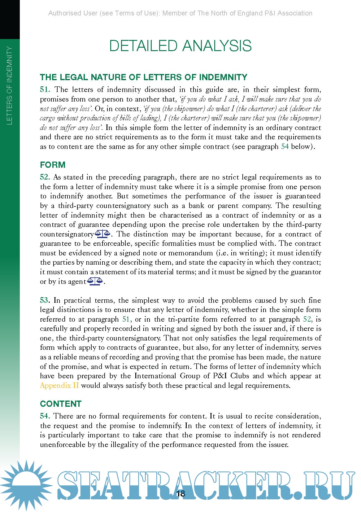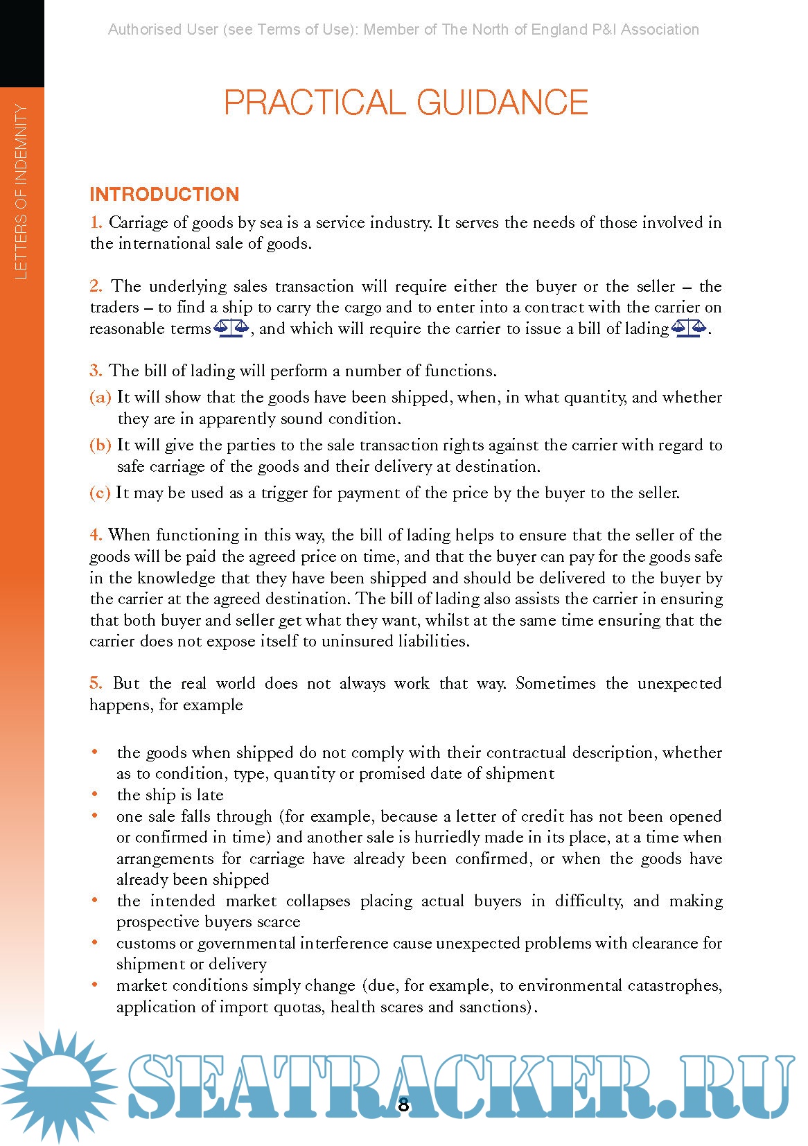 Description: This publication is a guide to letters of indemnity and the practical issues and potential problems surrounding their use.