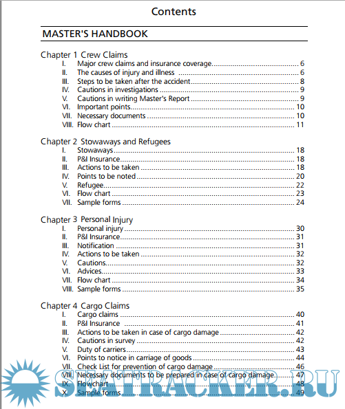 Year: 2005 Language: english Author: The Japan Ship Owners’ Mutual Protection & Indemnity Association Genre: Reference book Publisher: The Japan Ship Owners’ Mutual Protection & Indemnity Association Format: PDF Quality: Unknown Pages count: 119 Description: This Handbook is intended for Masters and officers as a help in emergency and/or facing typical P&I claims. For more information about P&I insurance or contact details of our correspondents, please refer to our Rules & List of Correspondents.