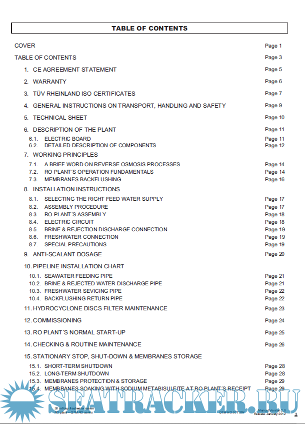 Quantum Reverse Osmosis RO Plant 30T Plant & 2500P UV Sterilizer Manual