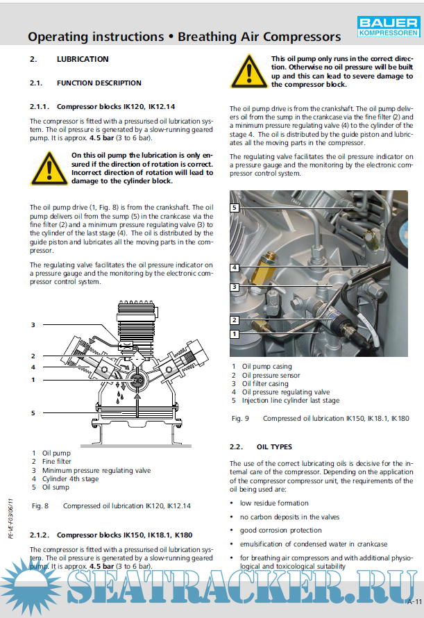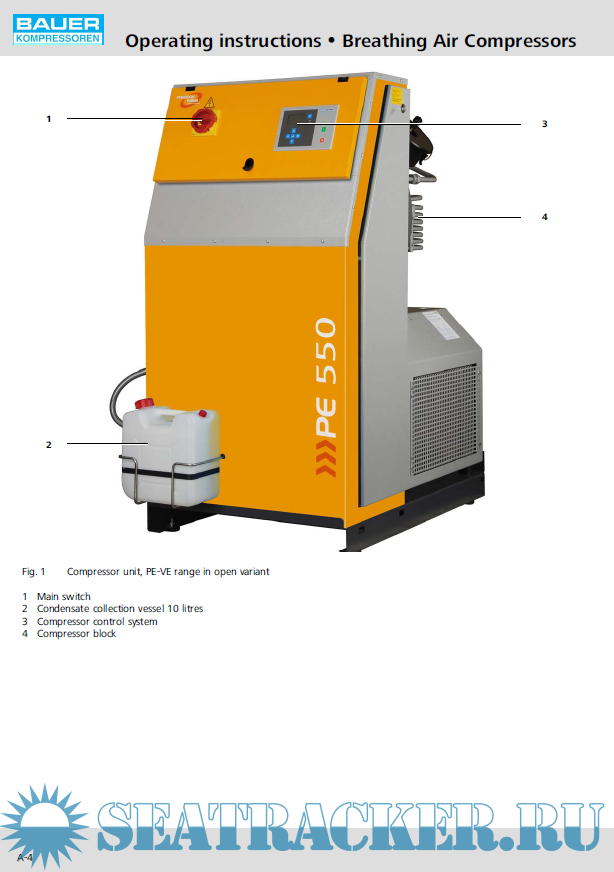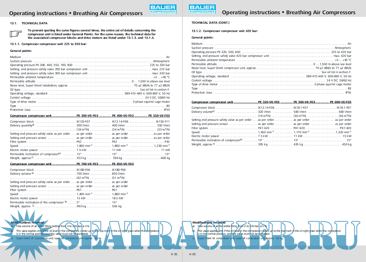 Bauer Compressor Poseidon Edition VE - 300-850 Breathing Air Compressor Operating Manual & Spare Parts Catalog