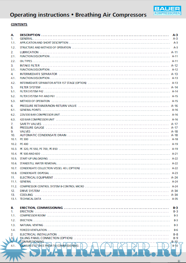 Year: 2011 Language: english Author: BAUER KOMPRESSOREN Germany Genre: Manual Format: PDF Quality: eBook Pages count: 112 Description: Breathing air is the most important tool in your kit – High-pressure compressors and compressor accessories optimised to suit your requirements BAUER KOMPRESSOREN filling units optimise reliability and safety for the dependable supply of clean breathing air or compressed air in all areas of application, ensuring consistent compliance with international air quality standards such as DIN EN 12021 (breathing air standard). As the most important tool in the kit, our high-quality units provide protection for our customers' lives, health and property in each and every situation. Our employees are passionate about providing people all over the world with the feeling of being 100% safe – this is what motivates our performance and success. BAUER KOMPRESSOREN offers state-of-the-art complete solutions for the field of sports & safety tailor-made to meet the needs of your application range. From compression to treatment and beyond to the distribution of air, breathing air and nitrox. Fire Fighting SCBA and Diving Tanks onboard.