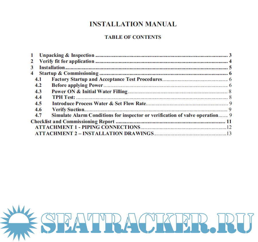 BOSS Oily Water Separator 11T-107 Installation, Operation & Maintenance Manual