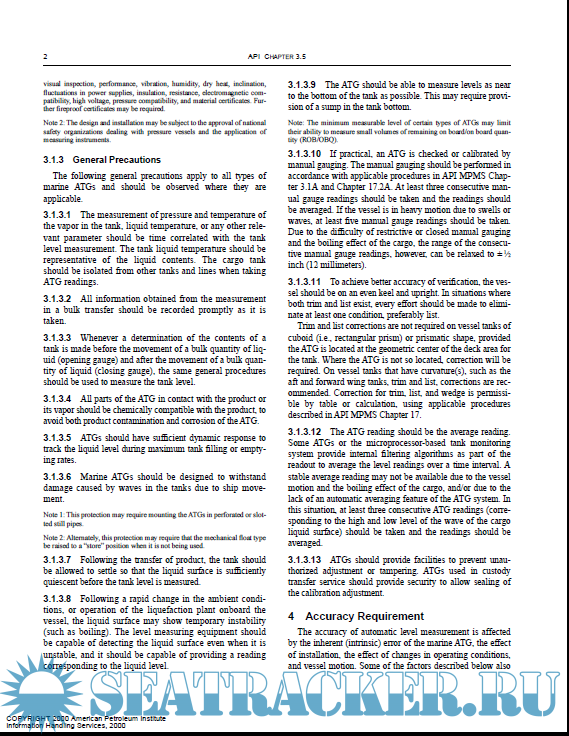API - Manual of Petroleum Measurement Standards Chapter 3—Tank Gauging - Section 5—Standard Practice for Level Measurement of Light Hydrocarbon Liquids Onboard Marine Vessels by Automatic Tank Gauging