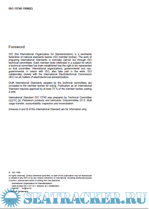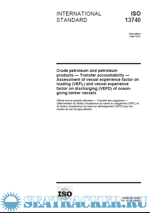 Description: ISO 13740 - Crude petroleum and petroleum products — Transfer accountability — Assessment of vessel experience factor on loading (VEFL) and vessel experience factor on discharging (VEFD) of oceangoing tanker vessels