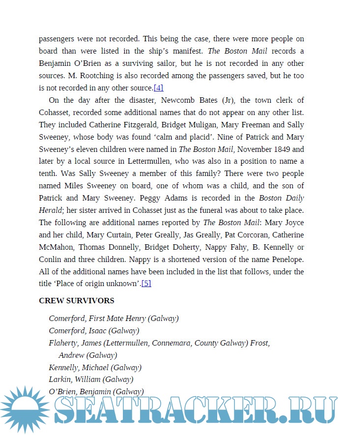 Description: The tragic tale of the sinking of the famine ship, the St. John in Massachusetts Bay in 1849. The Great Irish Famine drove huge numbers of Irish men and women to leave the island and pursue their survival in foreign lands. In 1847, some 200,000 people sailed for Boston alone. Of this massive group, 2,000 never made it to their destination, killed by disease and hunger during the voyages, their remains consigned to a watery grave. The sinking of the brig St. John off the coast of Massachusetts in October 1849, was only one of many tragic events to occur during this mass exodus. The ship had sailed from Galway, loaded with passengers so desperate to escape the effects of famine that some had walked from as far afield as Clare to reach the ship. The passengers on the St. John made it to within sight of the New World before their ship went down and they were abandoned by their captain, who denied that there had been any survivors when he and some of his crew made it ashore. For those who died in the seas off Massachusetts, there was nothing to mark their last resting place; no name, no memory of them ever having existed, just another statistic in a terrible tragedy.