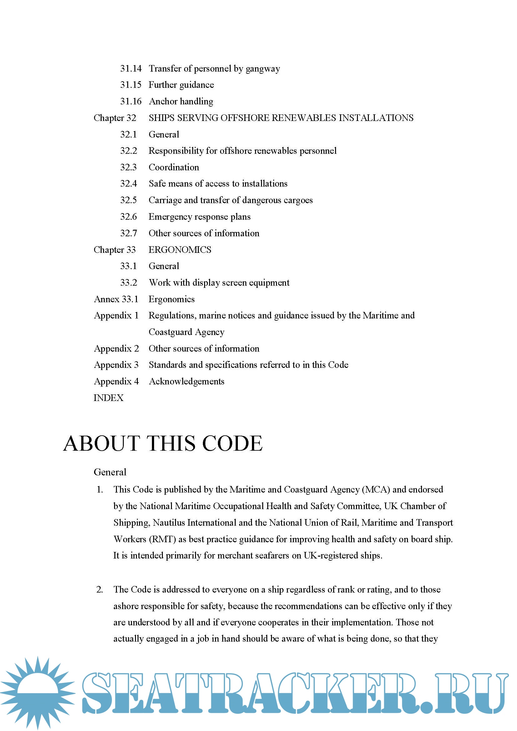 Description: This Code is published by the Maritime and Coastguard Agency (MCA) and endorsed by the National Maritime Occupational Health and Safety Committee, UK Chamber of Shipping, Nautilus International and the National Union of Rail, Maritime and Transport Workers (RMT) as best practice guidance for improving health and safety on board ship. It is intended primarily for merchant seafarers on UK-registered ships.