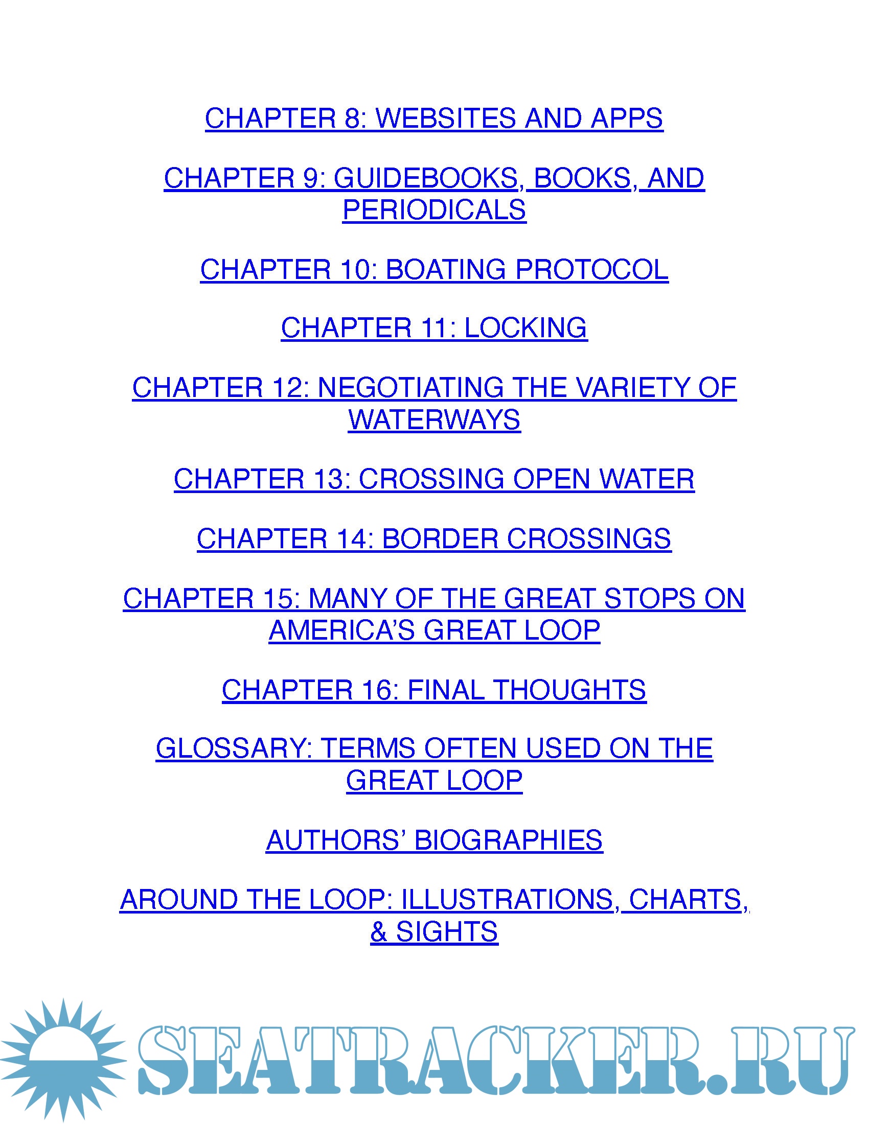 Year: 2014 Language: english Author: George Hospodar, Patricia Hospodar Publisher: Atlantic Publishing Group Edition: 1st ISBN: 9781601389404 Format: EPUB/PDF Quality: eBook Pages count: Multiple (425 for .pdf) Description: This guide helps you create the journey of a lifetime. The book covers important financial, medical, insurance, home, time-frame, and life-style factors that should be considered before starting. It details choosing and outfitting your boat for the journey, route planning, guidebooks, and charts to have onboard, types of locks, dealing with customs, negotiating open water passages, and more. This trip resulted in their first book, Reflection on America’s Great Loop, a personal, light-hearted, real-life account of the couple’s travels while circumnavigating the waters of the United States and Canada. Some of the many topics covered include: selecting and equipping your boat, choosing your route, financial considerations and trip costs, managing your onboard life, vessel security, Customs and border crossings, boating protocol, locking procedures, safely negotiating the waterways, open-water crossings, and great stops along the way. This how-to guide not only informs and educates you, but also hopes to inspire those who want to one day make this wonderful journey! The Great Loop Experience has the information you need so that you can confidently and knowledge- ably cast off your lines for your own exhilarating Great Loop adventure!