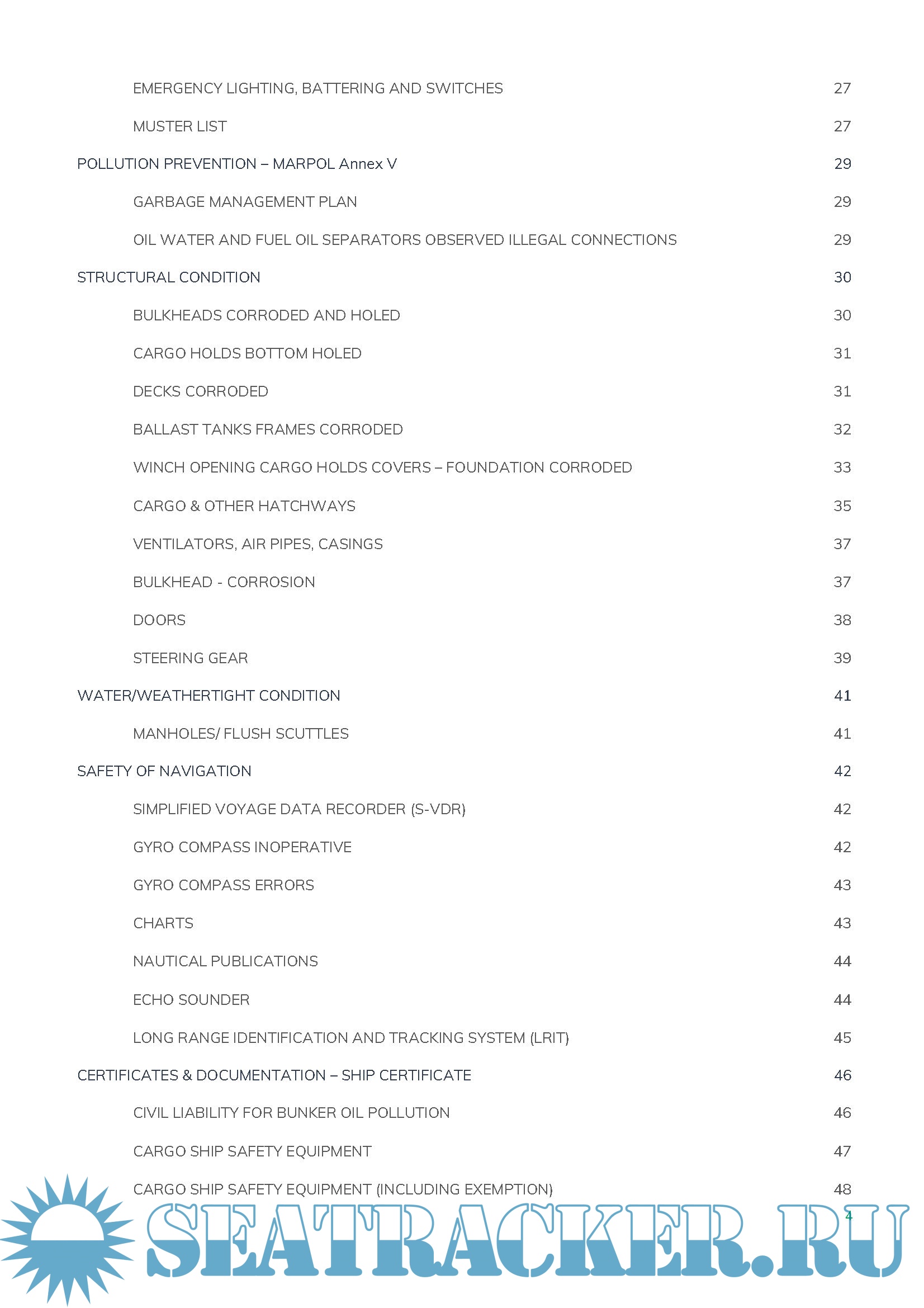 The checklist should be used by the ship’s crew prior to arrival into port. The categories of inspection included in this checklist have been identified as items that lead classed ships to detention.
