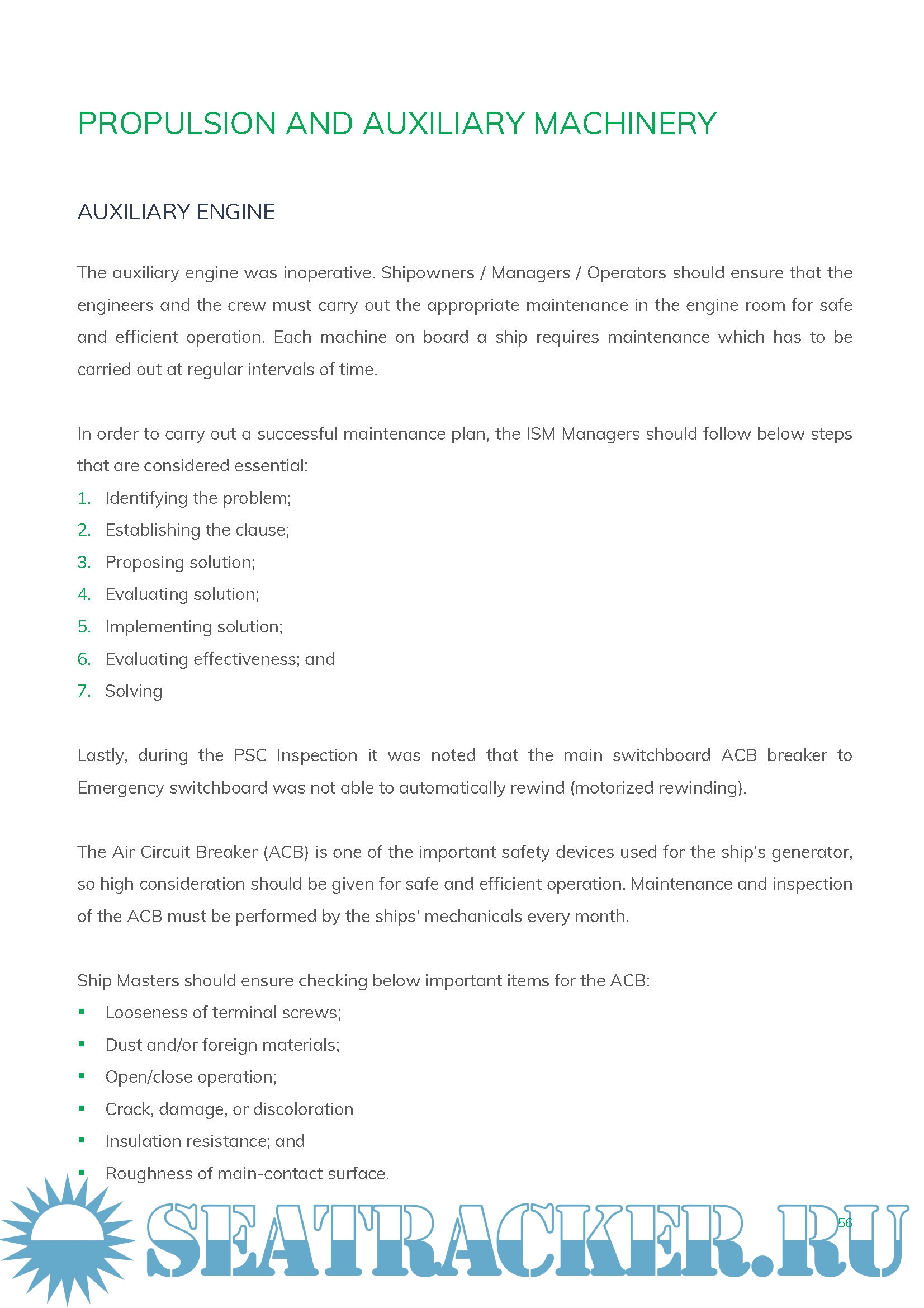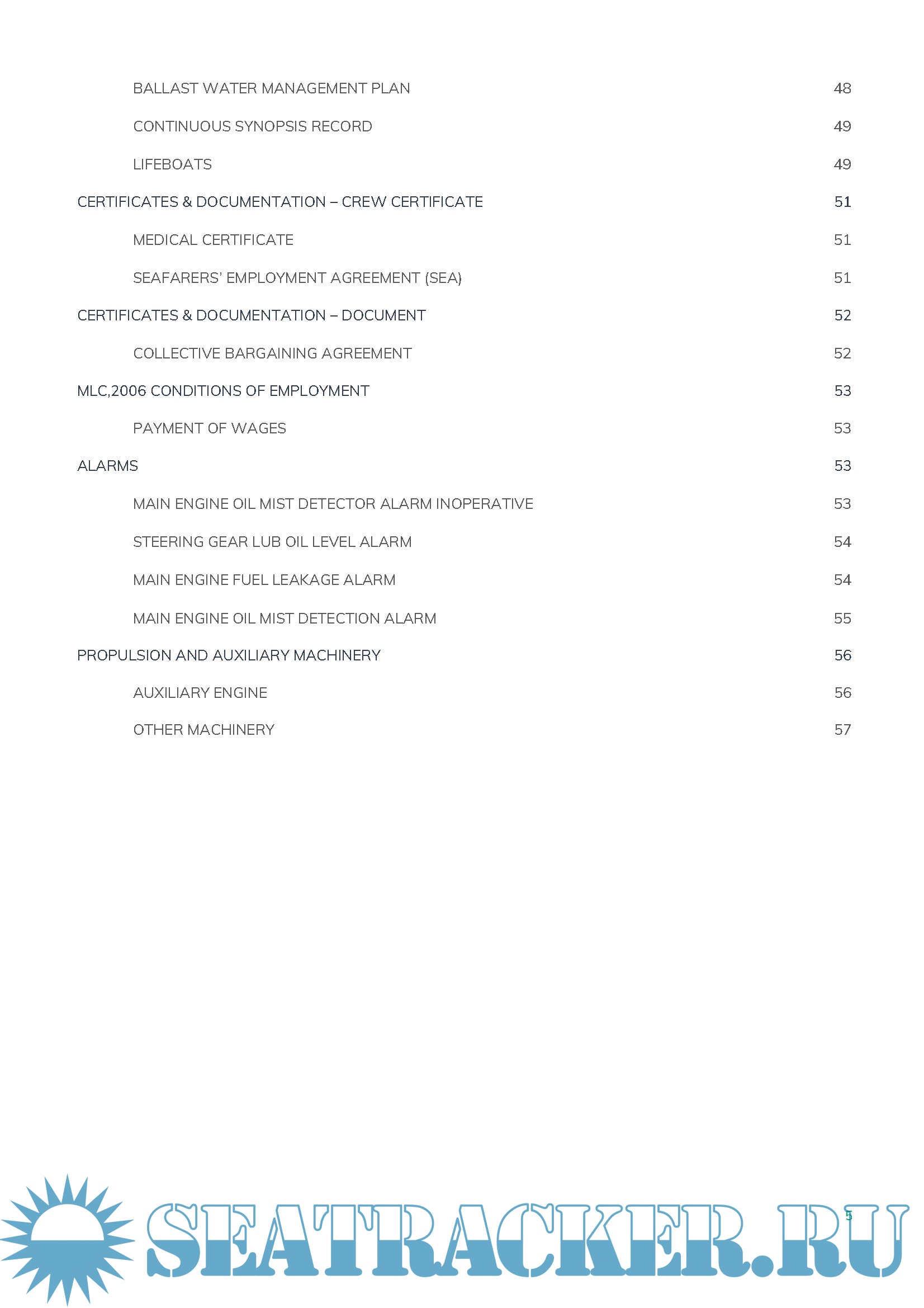 Many of the deficiencies in this document show three major issues are the main cause of those detainable deficiencies: the lack of planned maintenance properly followed by the crew on board, the lack of Crew Familiarization with SMS system and the lack of monitoring by the ISM Company.
