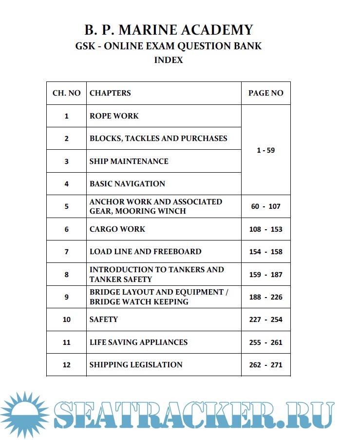 Description: Online Exam Question Bank for GP Rating covering below topics: