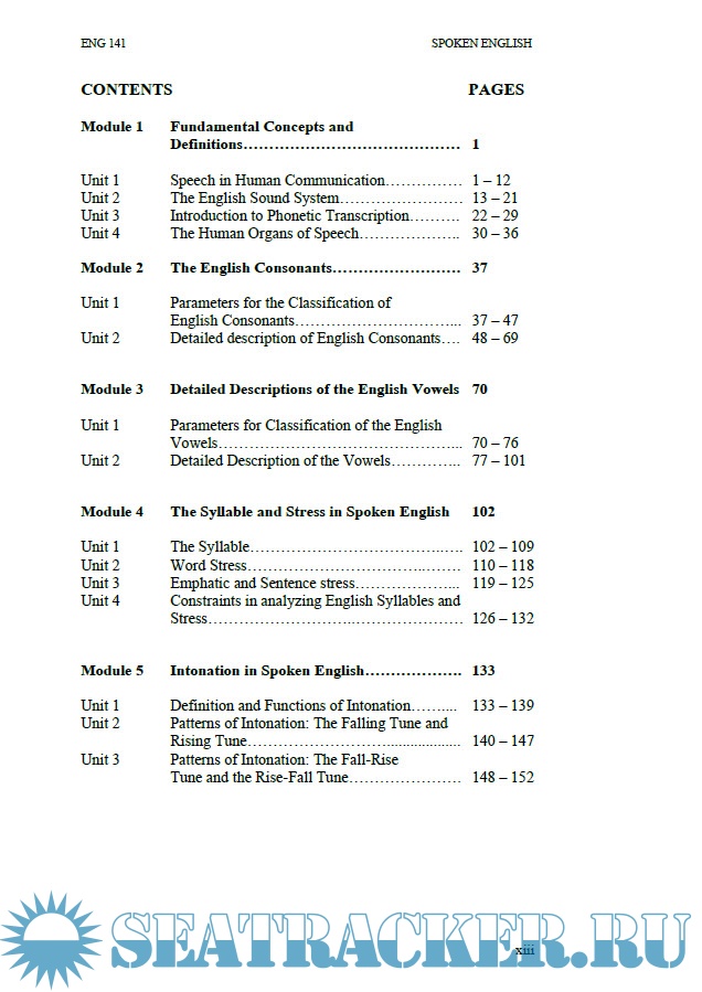 Year: 2008 Language: english Author: National Open University of Nigeria Genre: Training courses Publisher: National Open University of Nigeria ISBN: 978-058-329-7 Format: PDF Quality: eBook Pages count: 171 Description: It introduces you to the basic concepts and techniques of spoken English. It is also designed to equip you with the ability to speak English in a variety of social and academic situations, and to enhance your understanding of academic and non-academic spoken discourse. Throughout the duration of this course, you will be exposed to activities and techniques that will help to increase your confidence and stimulate further learning in speech communication. The course lays particular emphasis on your ability to recognize and articulate the sounds used in spoken English.