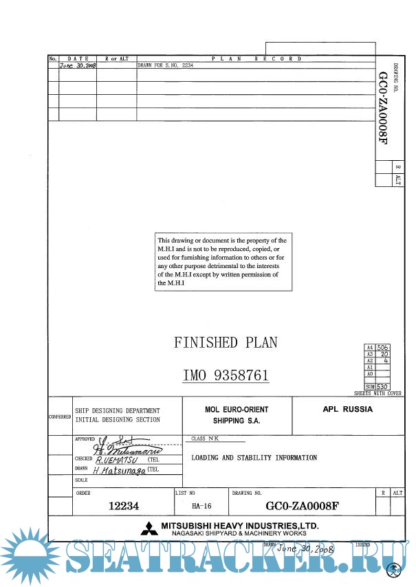Loading and stability information. Containership APL Russia (MOL Comfort), 8110 TEU