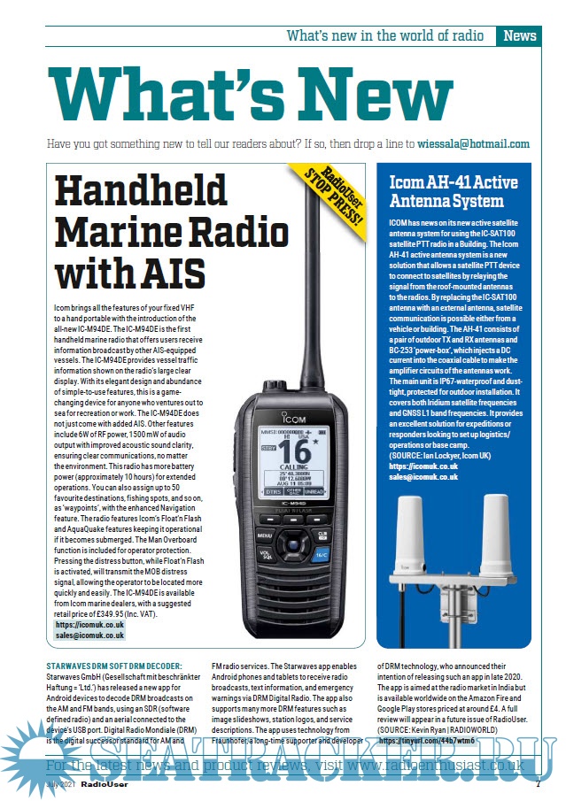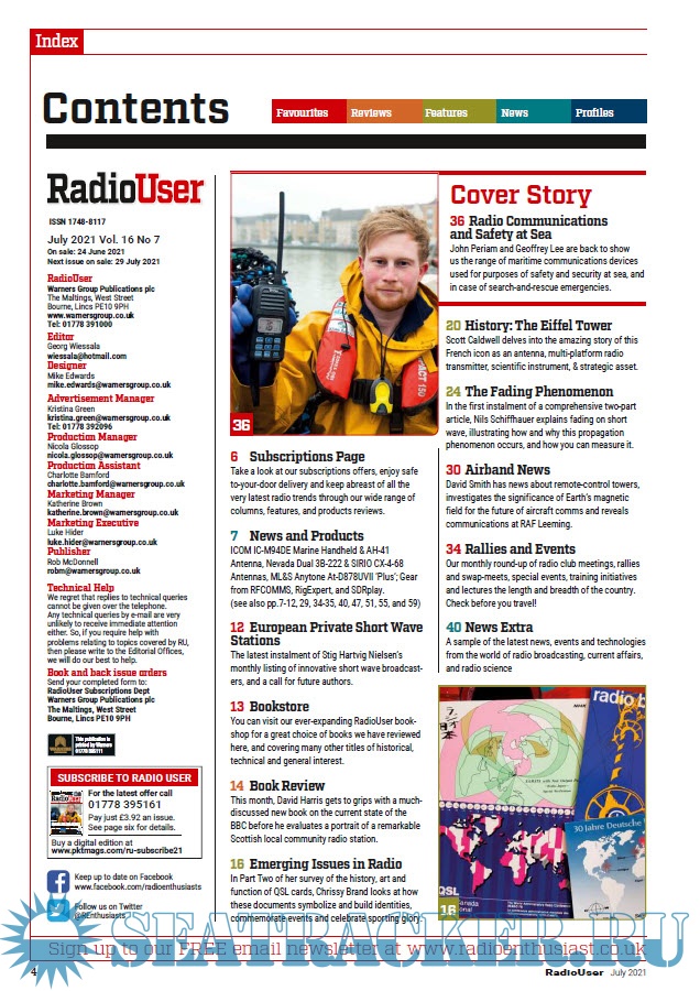 Year: 2021 Language: english Author: (Editor) Georg Wiessala Genre: Periodical (magazine) Publisher: Warners Group Publications plc Edition: July, Vol.16 No.7 ISSN: 1748-8117 Format: PDF Quality: eBook Pages count: 69 Description: Since its debut, RadioUser has been the best-selling radio listeners’ magazine in the UK. It was launched in January 2006, taking the very best from both Radio Active Magazine and Short Wave Magazine, which was first published in 1937 to cater for the radio enthusiast. This it continued to do in its own inimitable way until March 1987 when, after 50 years of service to the UK radio amateur, it was re-launched to cater for the radio listener.Short wave listening covers all forms of radio listening – broadcast, airband, scanning, DXTV, weather satellites, amateur bands, decode, SSB utilities, numbers stations, milair and propagation to mention a few. All these topics are covered each month with regular columns compiled by the leading experts in their field. The reader of RadioUser is kept up-to-date with the latest happenings around the world and the latest news and reviews.The features in RadioUser are selected to cover all aspects of the hobby at all levels of understanding but above all, the aim is to give the reader the most readable radio magazine on the newsstands. Simple constructional projects allow readers of all levels to try their hand at building something of use in the shack and to experience the thrill of achievement that building a successful radio project can bring. In-depth reviews of the latest receivers, scanners, CB, PMR and other associated radio equipment help keep the listener up-to-date with the latest developments in a rapidly expanding hobby.