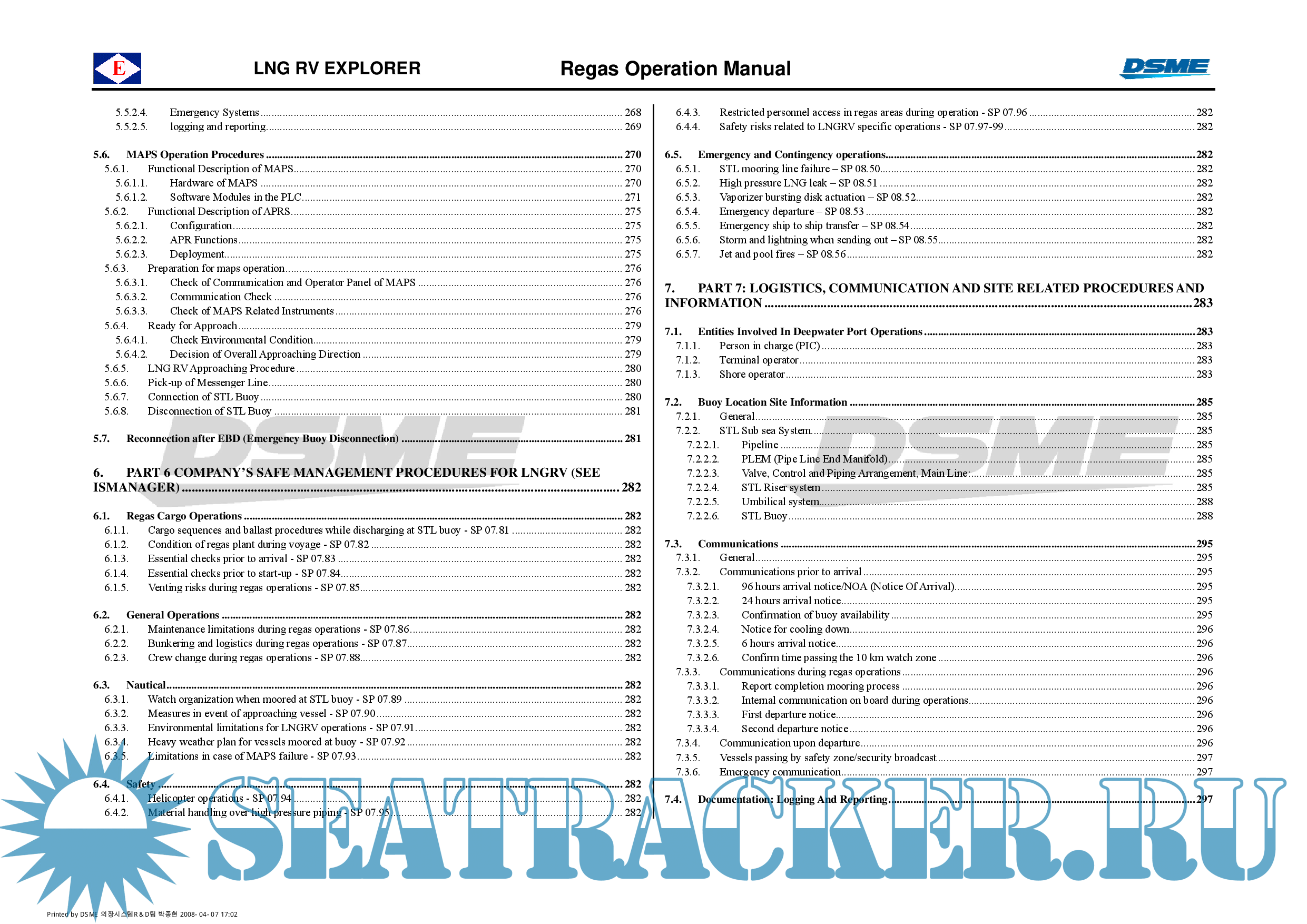LNG RV Explorer - Machinery Operating Manual - DSME [2008, PDF]