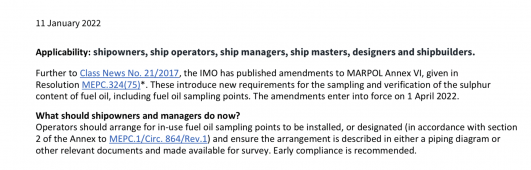 • Three types of fuel oil samples now defined in MARPOL – ‘In-use sample’, ‘Onboard sample’ and ‘MARPOL delivered sample’ – used to check for compliance with sulphur limits