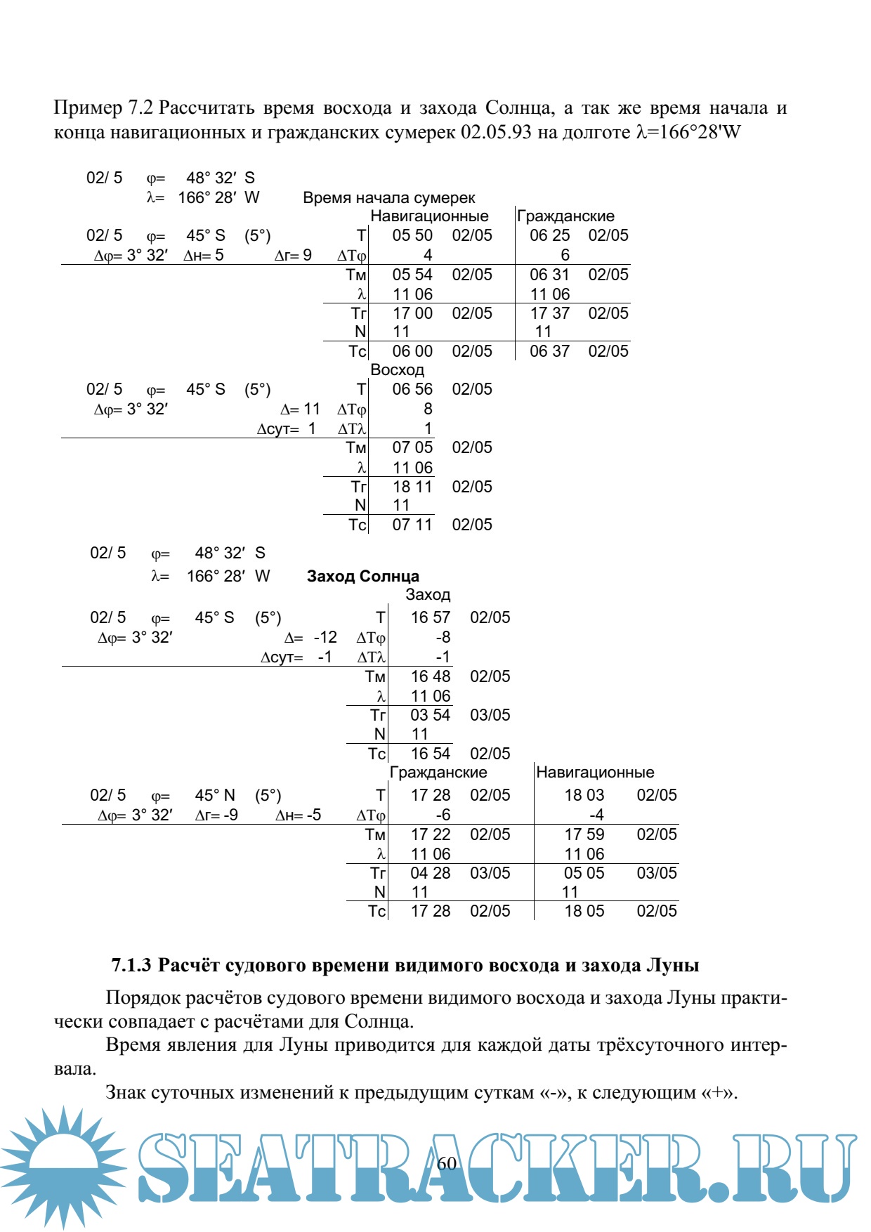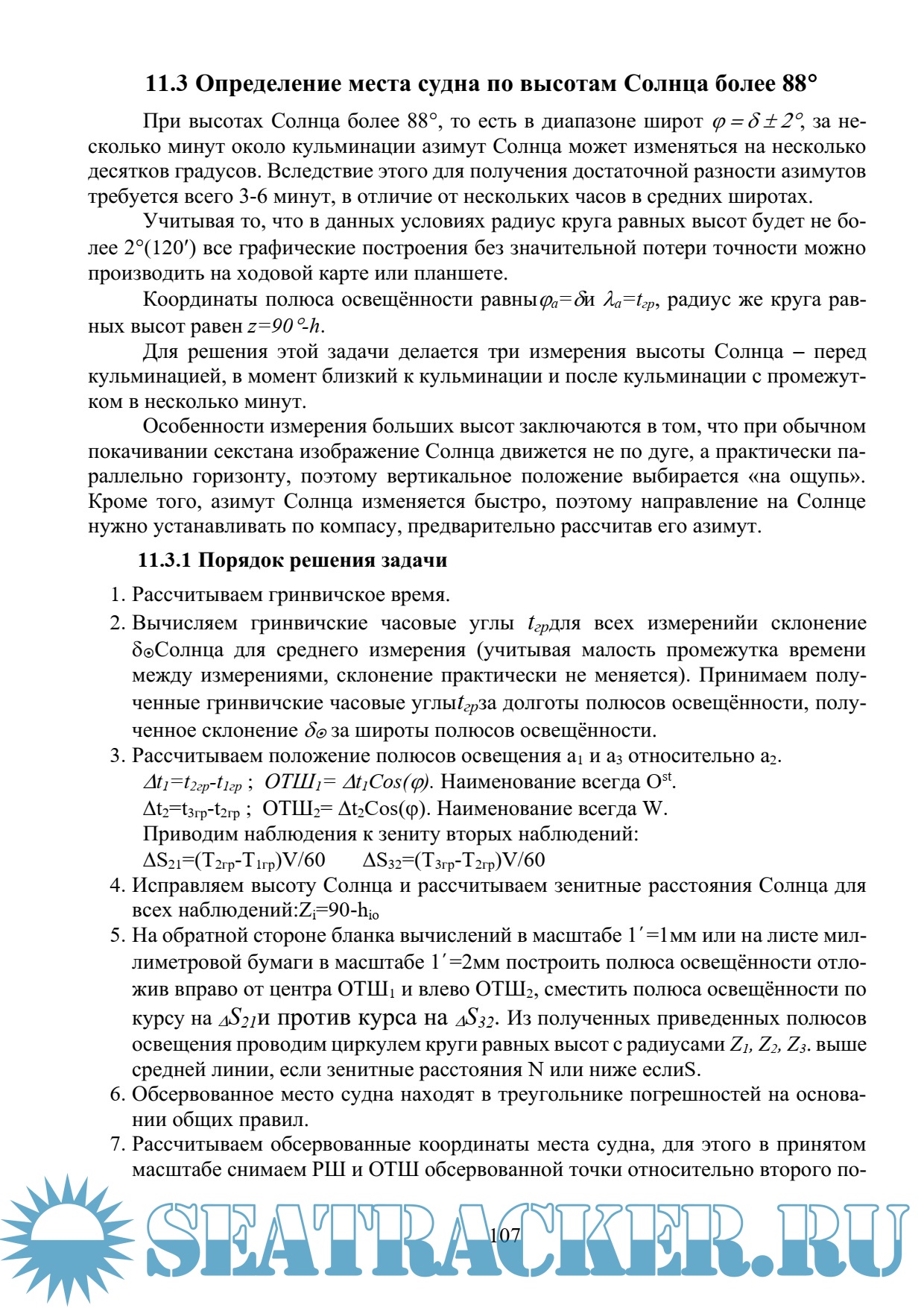Рассмотрены различные способы решения основных и вспомогательных задач мореходной астрономии, такие как определение места судна, определение поправки компаса, определение времени астрономических наблюдений и пр.