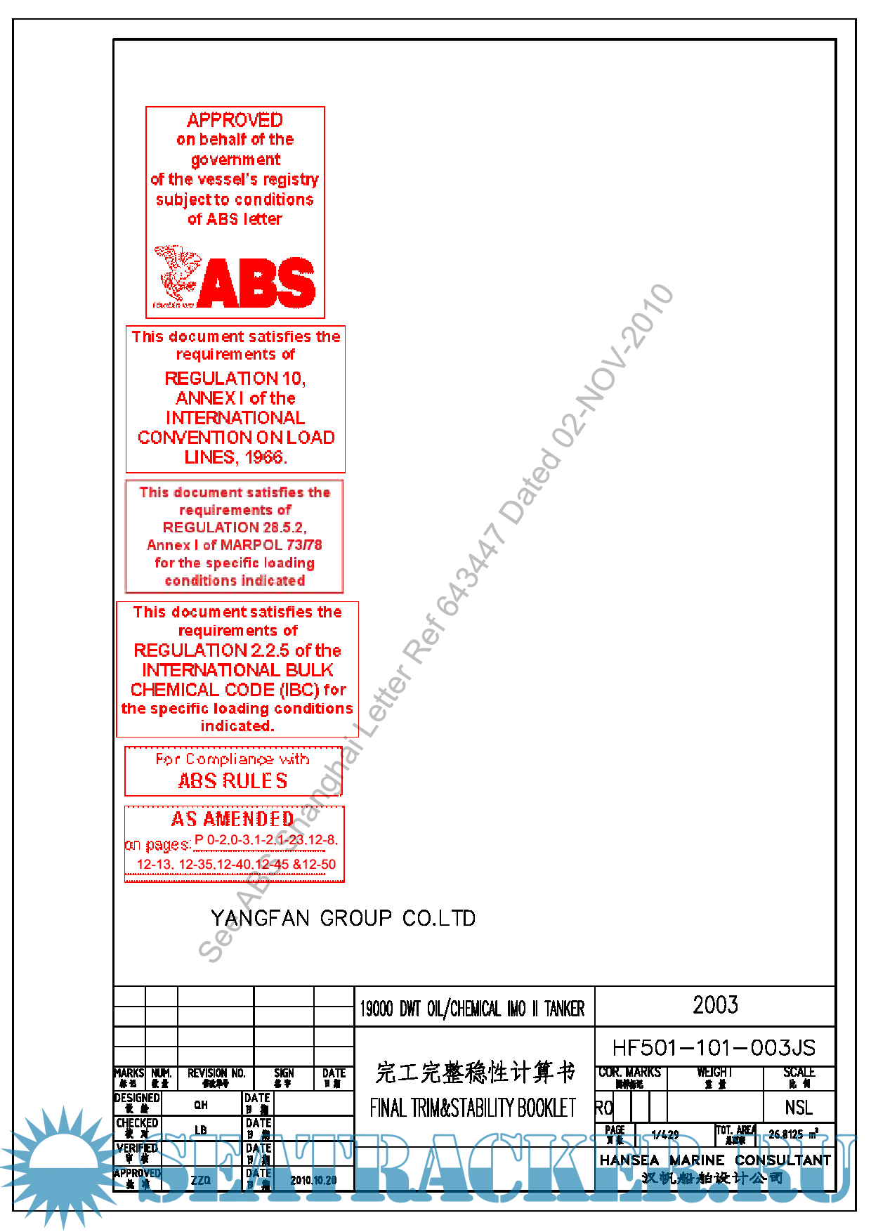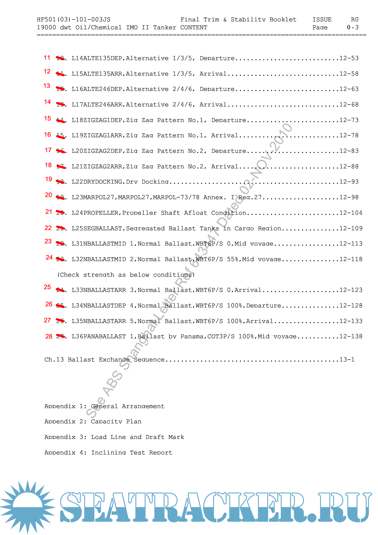 MV HANJIN TURKEY- 3600 TEU class container carrier- Provisional Trim and Stability booklet -…