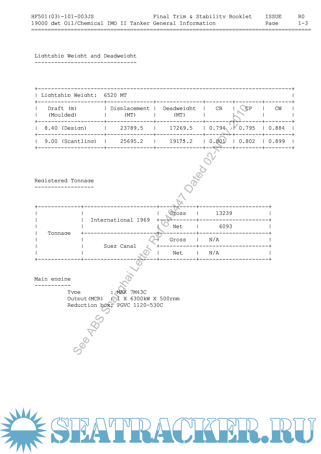 MV Densa Tiger (Anna-Regina) Documentation - COSCO KHI SHIP Engineering [2010, PDF]