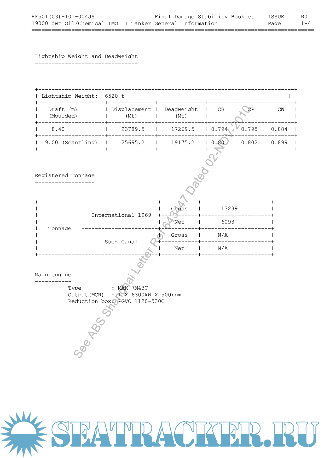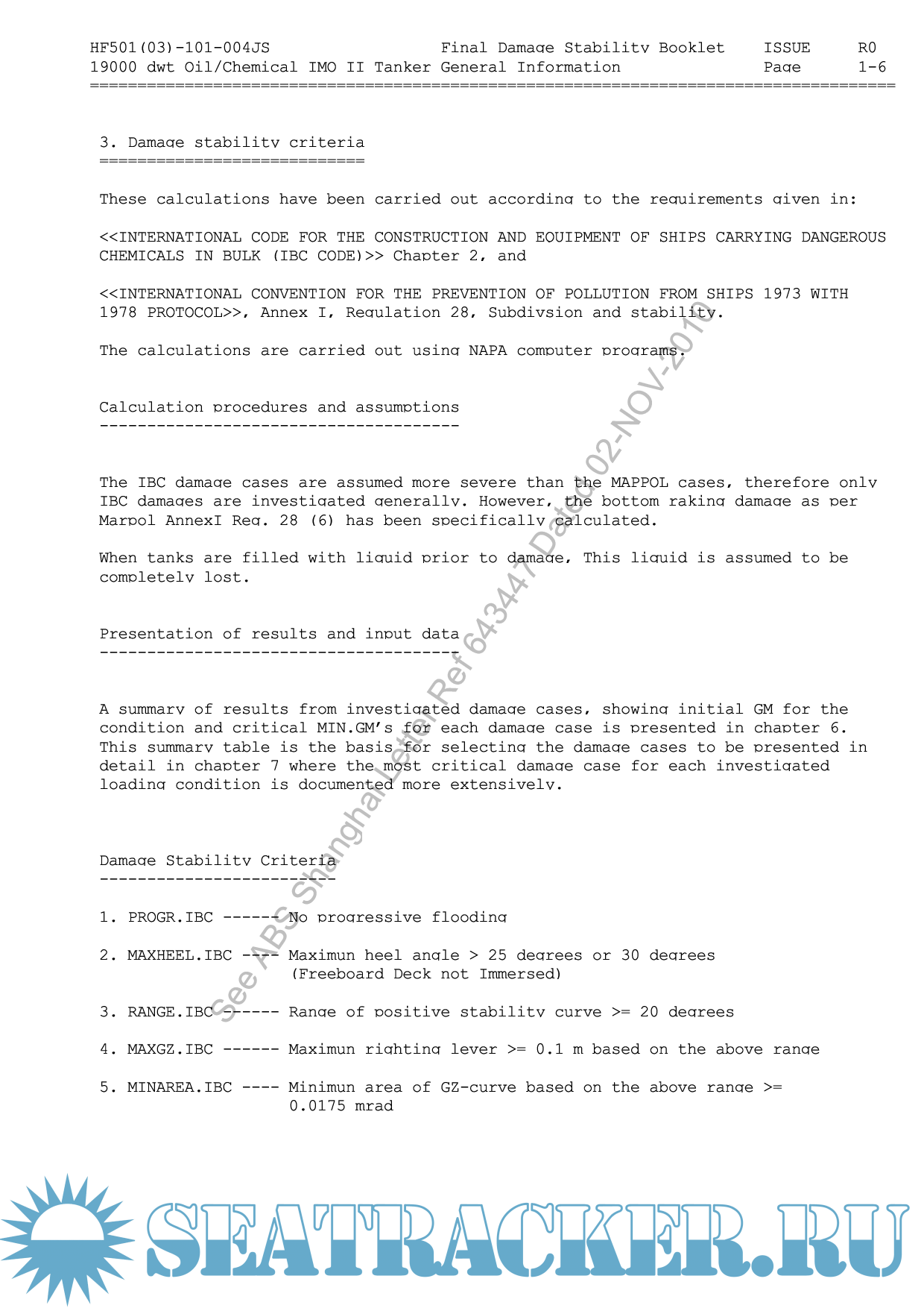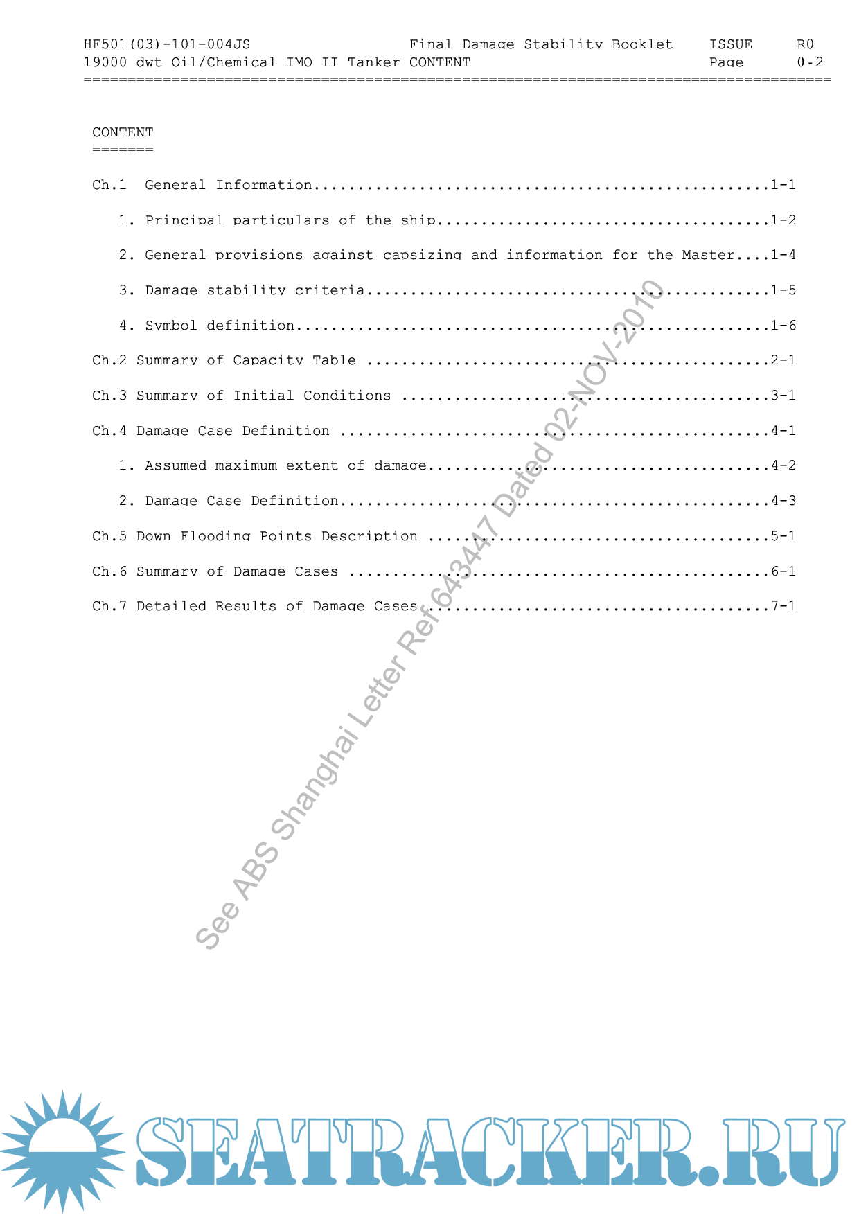 DAMAGE STABILITY BOOKLET - BULK CARRIER