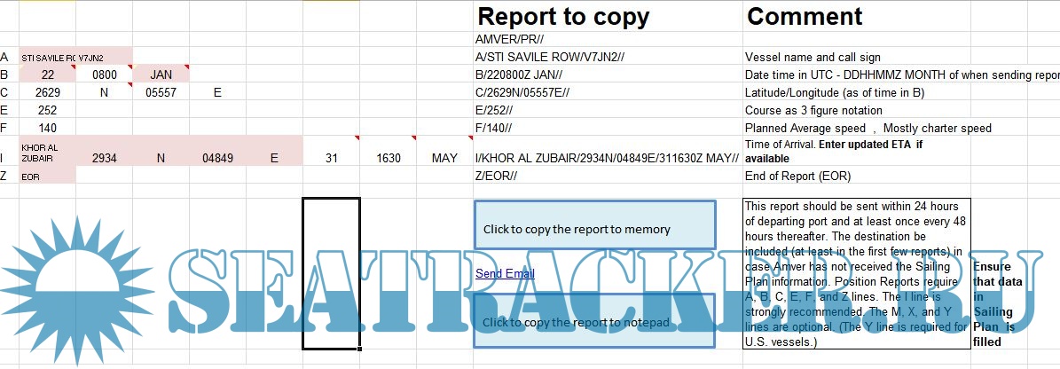 Description: This is a program I made to make AMVER reporting easier. Just export the route from ECDIS into csv fromat , paste it in excel , add a few necessary details and press the button. Thats all you have to do. I have changed few things on it. I hope now the procedure becomes much easier.If you have any feedback , please do tell me