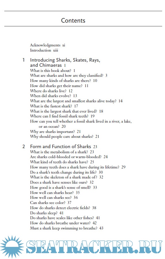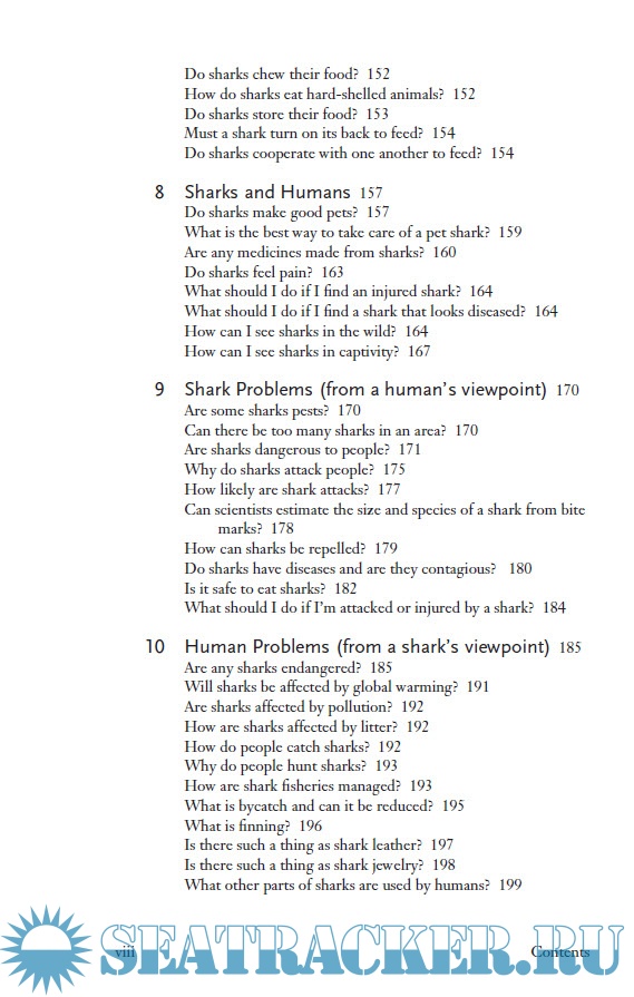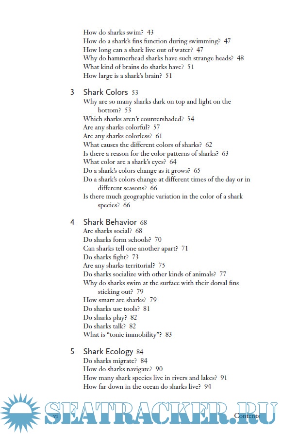 Description: Answering every conceivable question about sharks, authors Gene Helfman and George H. Burgess describe the fascinating biology, behavior, diversity (there are more than 1,000 species worldwide), and cultural importance of sharks, their close relationship to skates and rays, and their critical role in healthy ecosystems. Helfman and Burgess take readers on a round-the-world tour of shark habitats, which include oceans as well as lakes and even rivers (as far up the Mississippi as St. Louis). They describe huge, ferocious predators like (Great) White and Tiger sharks and species such as Basking and Whale sharks that feed on microscopic prey yet can grow to lengths of more than 40 feet. The mysterious and powerful Greenland shark, the authors explain, reaches a weight of 2,200 pounds on a diet of seal flesh. Small (less than 2-foot long) Cookiecutter sharks attack other sharks and even take a chunk out of the occasional swimmer. Despite our natural fascination with sharks, we have become their worst enemy. Many shark species are in serious decline and a number are threatened with extinction as a result of overfishing and persecution. Sharks: The Animal Answer Guide presents a perfect mix of current science, history, anthropology, intriguing facts, and gripping photographs. Whether your fascination with sharks stems from fear or curiosity, your knowledge of these animals will improve immensely when you consult this book.