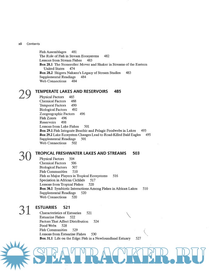 Description: One of the most comprehensive and current general sources of information on fishes, this text covers a broad number of topics such as including the structure and physiology, evolution, otaxanomy, zoogeography, ecology, and conservation of fishes. While providing the basic background of fish biology, the conservation approach and up-to-date coverage conveys the excitement being generated by recent research on fishes.