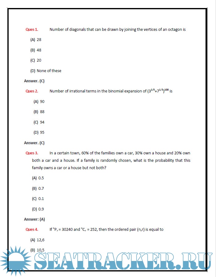  Number of questions provided below are as per the previous year trends.