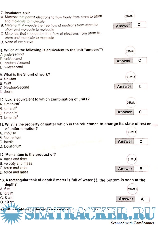 Indian Maritime University Common Entrance Test (IMU-CET) Sample Question Papers for Physics,…