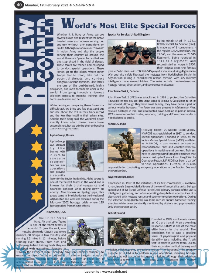 Some notable endeavors of the magazine include the Know Your Recruiter Column, the Sailing Episodes Column and the Marine Insights section. The consistent efforts and the dedication to provide extraordinary services to the industry has resulted in the magnifying popularity and patronage of Sea and Job Magazine currently extending to 70-72 pages.