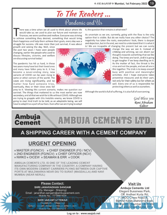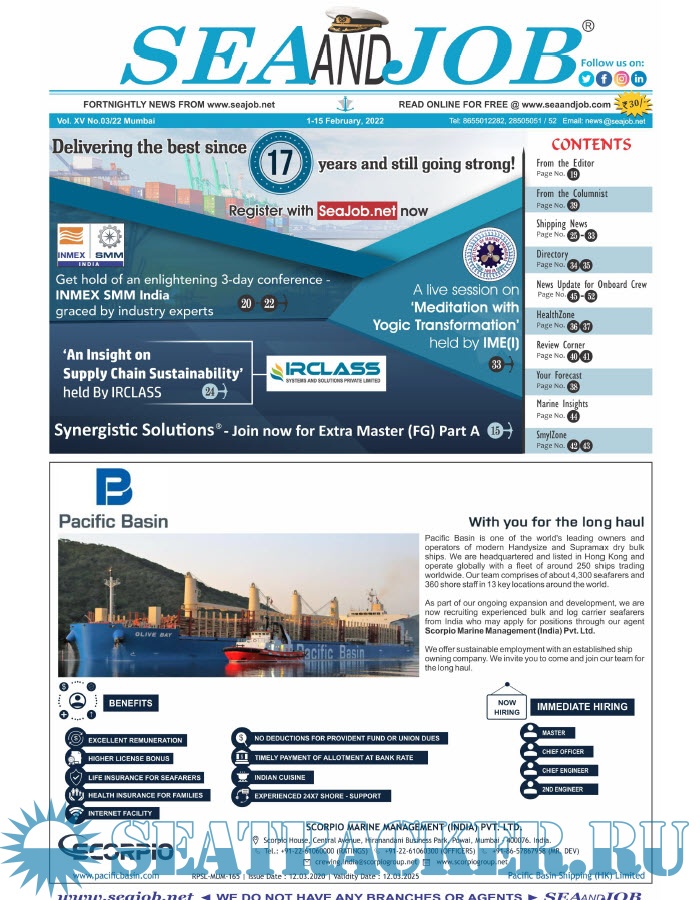 Bringing the much renowned essence to the Group, the Sea and Job Magazine quickly gained popularity, becoming the No. 1 Shipping Magazine that came to be widely circulated all over India. Sea and Job over the years has evolved as the most trusted, ethical, objective and read maritime publication that possesses a large database of subscribers from various verticals in the industry. The magazine provides informative and interesting articles covering not just the shipping world but also the world outside it. Sea and Job is also a medium for the shipping/ manning companies to advertise marine jobs and also to promote their organization by publicizing internal activities like seminars, sports events and parties.