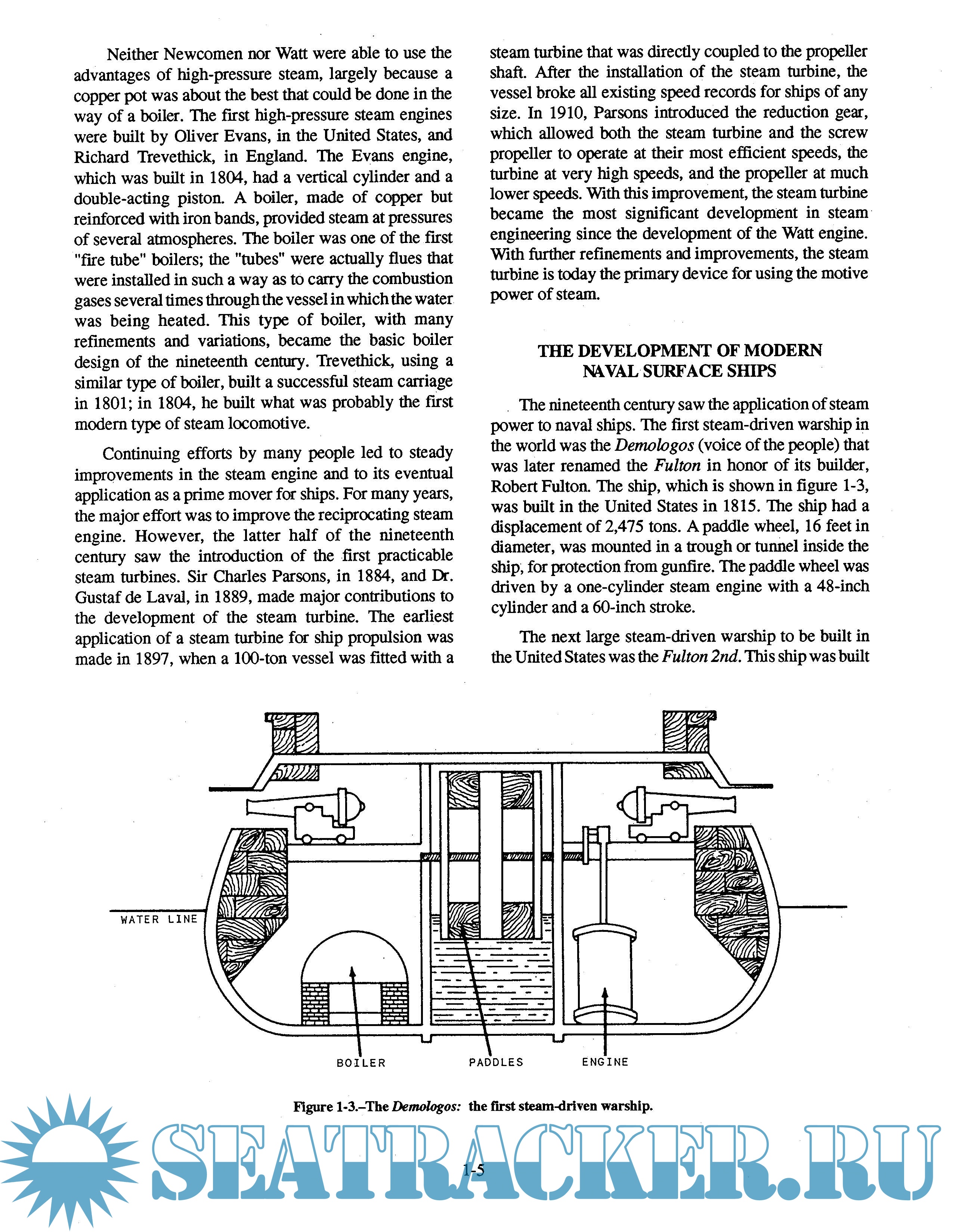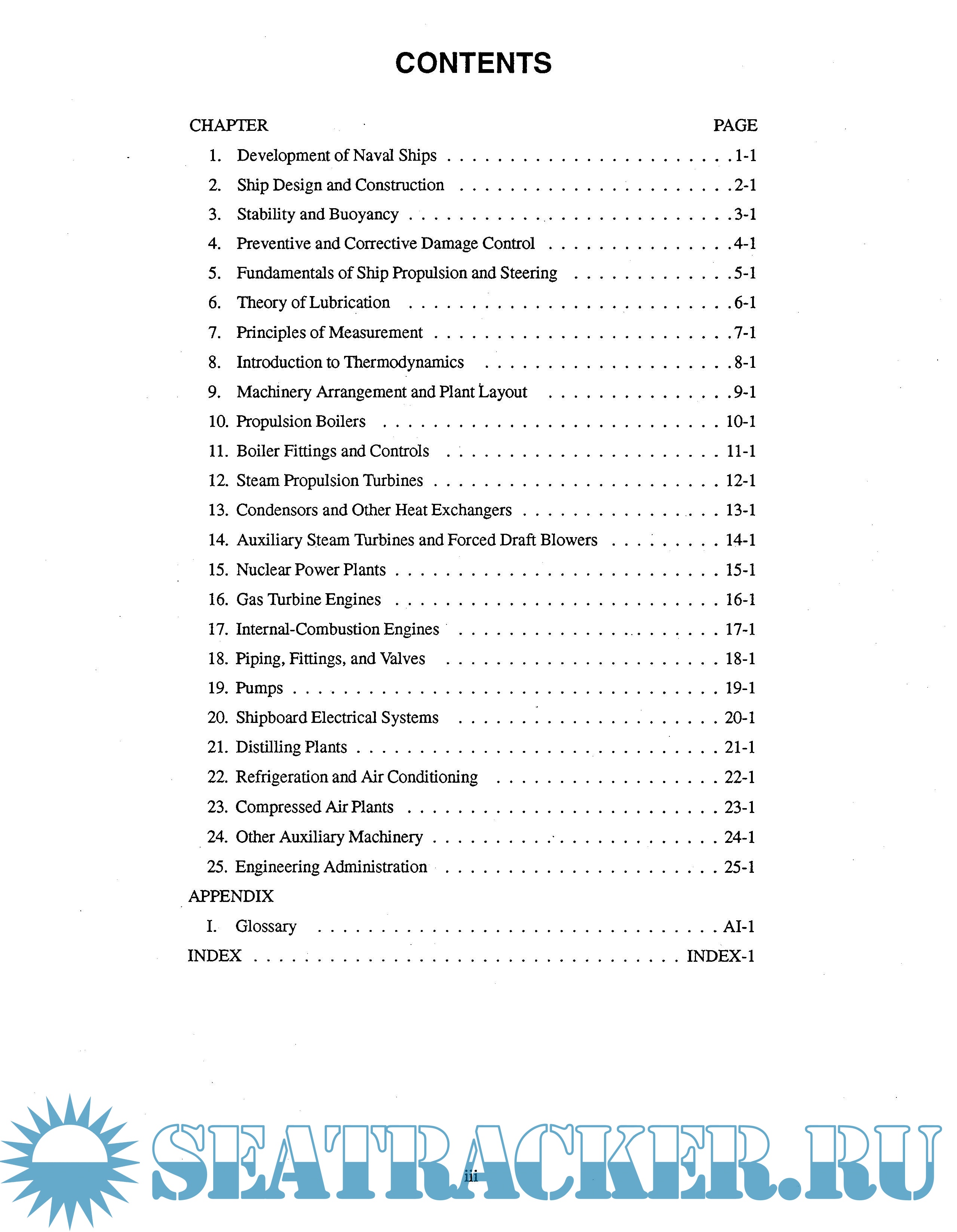 Year: 1992 Language: english Author: David A. Smith, C. D. Lomibao Publisher: Naval Education and Training Program Edition: 1992 Edition Format: PDF Quality: eBook Pages count: 628 Description: This training manual (TRAMAN) and nonresident training course (NR TC) form a self-study package that is designed for individual study rather than formal classroom instruction. This package provides an introduction to the theory and design of engineering machinery and equipment aboard ship. Primary emphasis is placed on helping the student acquire an overall view of shipboard engineering plants and an understanding of basic theoretical considerations that underlie the design of machinery arid equipment. This self-study package was prepared by the Naval Education and Training Program Management Support Activity, Pensacola, Florida, for the Chief of Naval Education and Training. Technical assistance was provided by the Naval Sea Systems Command (Code 08), Washington, D. C.