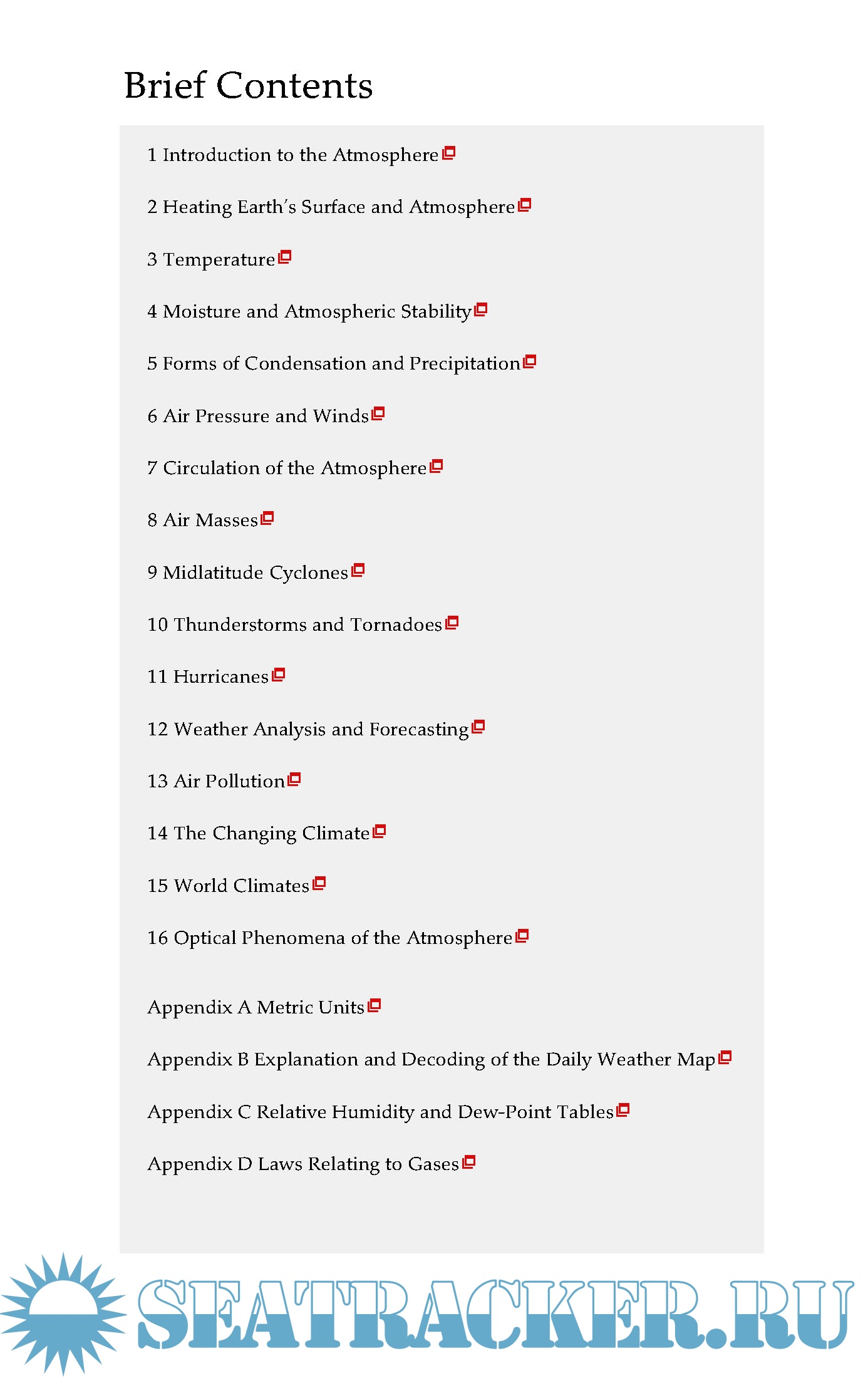 Year: 2019 Language: english Author: Lutgens, Tarbuck, Herman, Tasa Publisher: Pearson Edition: 14th ISBN: 9780134758589 Format: PDF Quality: Unknown Pages count: 1910 Description: The Atmosphere: An Introduction to Meteorology remains the definitive introductory meteorology text, reinforcing basic concepts with easy-to-grasp, everyday examples. Authors Lutgens and Tarbuck, now joined by Redina Herman, present meteorology with a friendly, largely non-technical narrative, timely coverage of recent atmospheric events, and carefully crafted artwork by leading science illustrator Dennis Tasa. The 14th Edition includes a new, easier-to-navigate design, and a more student-oriented approach that provides a clear learning path throughout the text. New pedagogical improvements, including pull quotes that act as guideposts, end-of-chapter questions and problems, and online exercises and activities, are available in Mastering™ Meteorology to help students understand the processes that control our weather and apply this information in their daily lives. .pdf converted version !!!