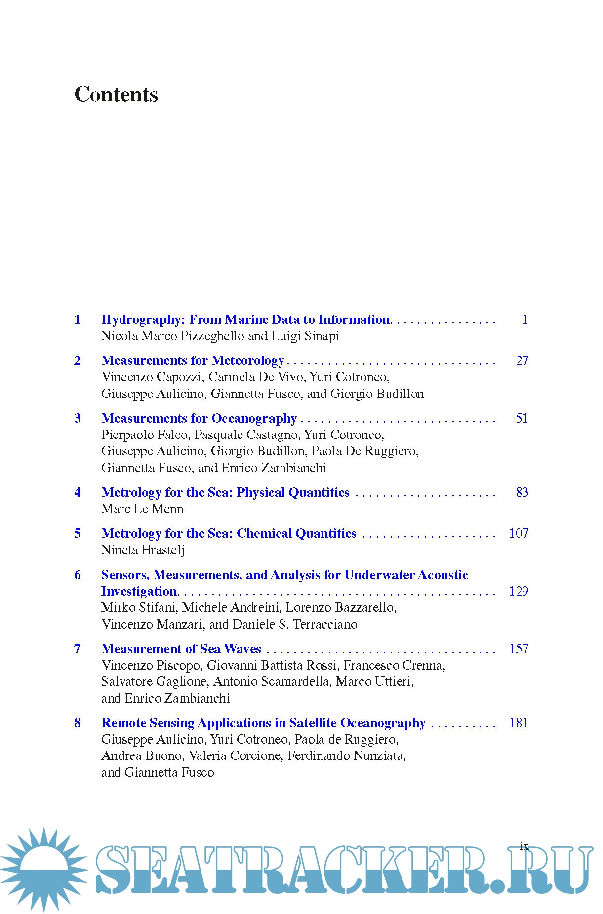 Description: The book covers two broad application areas, marine hydrography and meteorology, and then deals with instrumentation for measurement at sea. Typical metrological issues such as calibration and traceability, are considered, for both physical and chemical quantities. Key techniques, such as underwater acoustic investigation, remote sensing, measurement of waves and monitoring networks, are treated alongside marine geology and the monitoring of animal species. Economic and legal aspects of metrology for navigation are also discussed. Such an unparalleled wide vision of measurement for the sea will be of interest to a broad audience of scientists, engineers, economists, and their students.