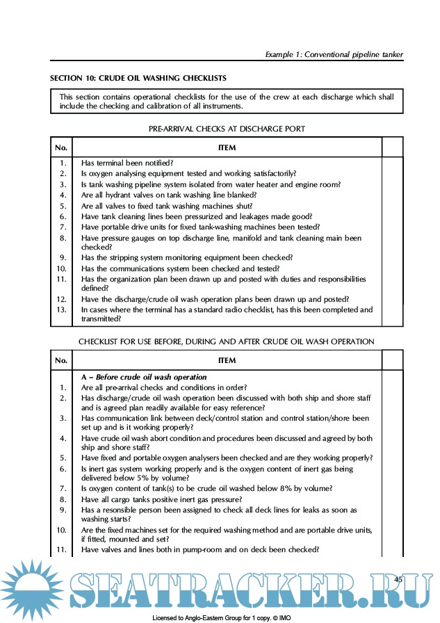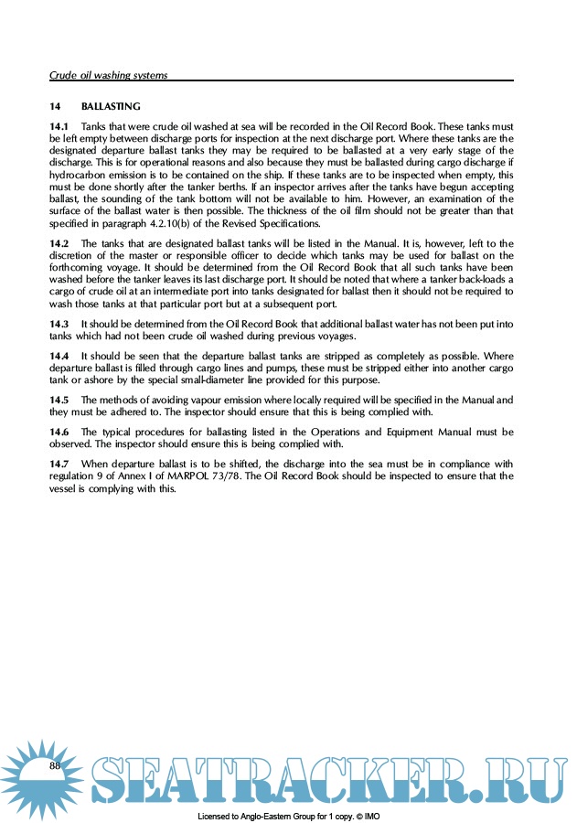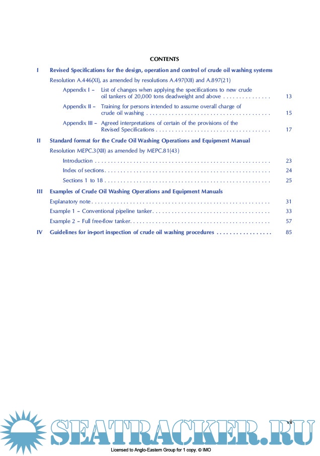 * Revised Specifications for the design, operation and control of crude oil washing systems (resolution A.446(XI), as amended by resolutions A.497(XII) and A.897(21)); * examples of Crude Oil Washing Operations and Equipment Manuals;