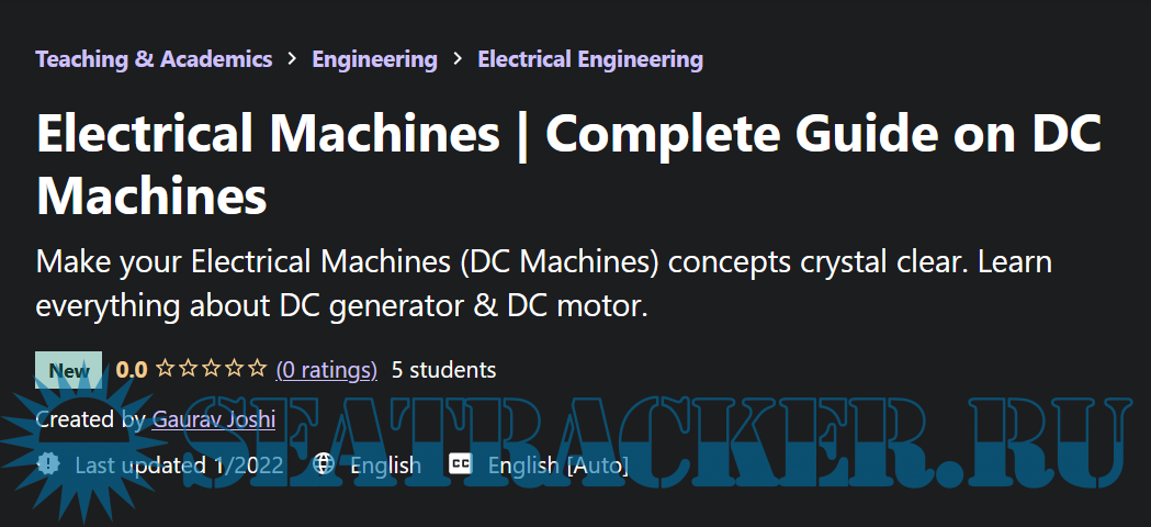 Description: Looking to fix your electric machines basics? Want to understand DC machines crystal clear and in the easiest language? If yes, then this course is for you. By the end of this course, your DC machines concepts will be clearer to you than others. You'll not only understand the concepts but, you'll master the DC machines i.e. DC Generator & DC Motor both.