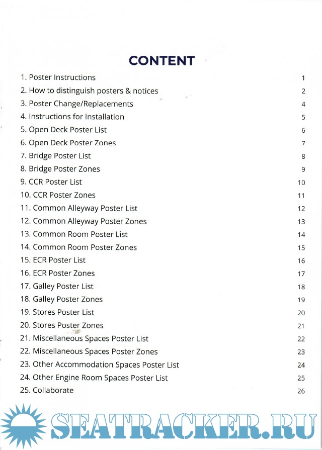 Description: Due to the clutter of signages on bulkheads, seafarers cannot pay attention to really important information. This guide helps to display only the most essential postes and notices on bulkheads where in time of emergency they can be accessed and referred to quickly.