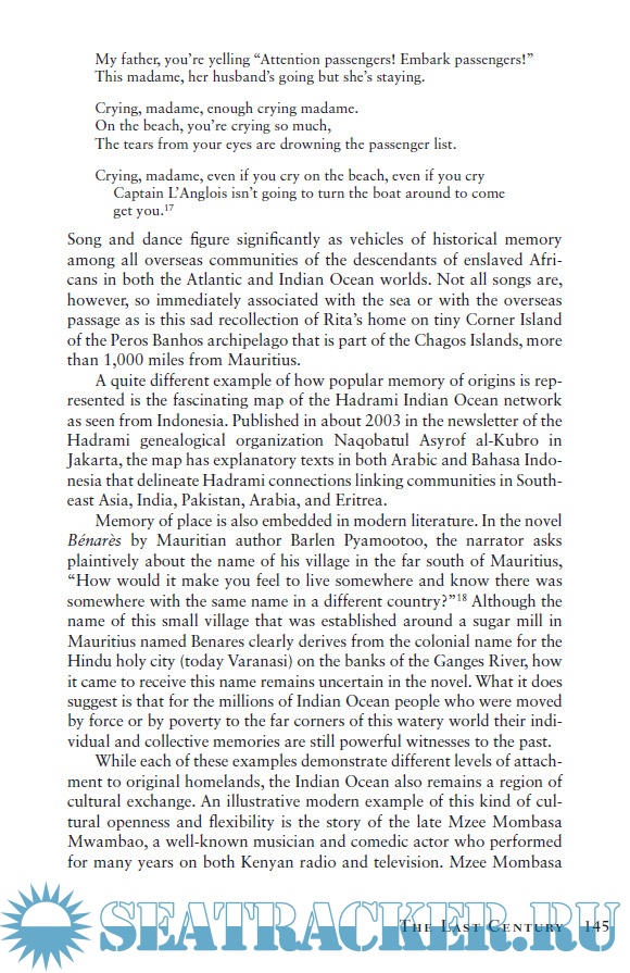 Year: 2014 Language: english Author: Edward A. Alpers Genre: History Publisher: OUP USA ISBN: 978-0195337877 Format: PDF Quality: eBook Pages count: 183 Description: The Indian Ocean remains the least studied of the world's geographic regions. Yet there have been major cultural exchanges across its waters and around its shores from the third millennium B.C.E. to the present day. Historian Edward A. Alpers explores the complex issues involved in cultural exchange in the Indian Ocean Rim region over the course of this long period of time by combining a historical approach with the insights of anthropology, art history, ethnomusicology, and geography. The Indian Ocean witnessed several significant diasporas during the past two millennia, including migrations of traders, indentured laborers, civil servants, sailors, and slaves throughout the entire basin. Persians and Arabs from the Gulf came to eastern Africa and Madagascar as traders and settlers, while Hadramis dispersed from south Yemen as traders and Muslim teachers to the Comoro Islands, Zanzibar, South India, and Indonesia. Southeast Asians migrated to Madagascar, and Chinese dispersed from Southeast Asia to the Mascarene Islands to South Africa. Alpers also explores the cultural exchanges that diasporas cause, telling stories of identity and cultural transformation through language, popular religion, music, dance, art and architecture, and social organization. For example, architectural and decorative styles in eastern Africa, the Red Sea, the Hadramaut, the Persian Gulf, and western India reflect cultural interchanges in multiple directions. Similarly, the popular musical form of taarab in Zanzibar and coastal East Africa incorporates elements of Arab, Indian, and African musical traditions, while the characteristic frame drum (ravanne) of séga, the widespread Afro-Creole dance of the Mascarene and Seychelles Islands, probably owes its ultimate origins to Arabia by way of Mozambique. The Indian Ocean in World History also discusses issues of trade and production that show the long history of exchange throughout the Indian Ocean world; politics and empire-building by both regional and European powers; and the role of religion and religious conversion, focusing mainly on Islam, but also mentioning Hinduism, Buddhism and Christianity. Using a broad geographic perspective, the book includes references to connections between the Indian Ocean world and the Americas. Moving into the twentieth and twenty-first centuries, Alpers looks at issues including the new configuration of colonial territorial boundaries after World War I, and the search for oil reserves.