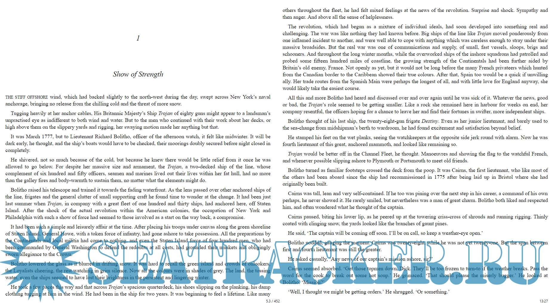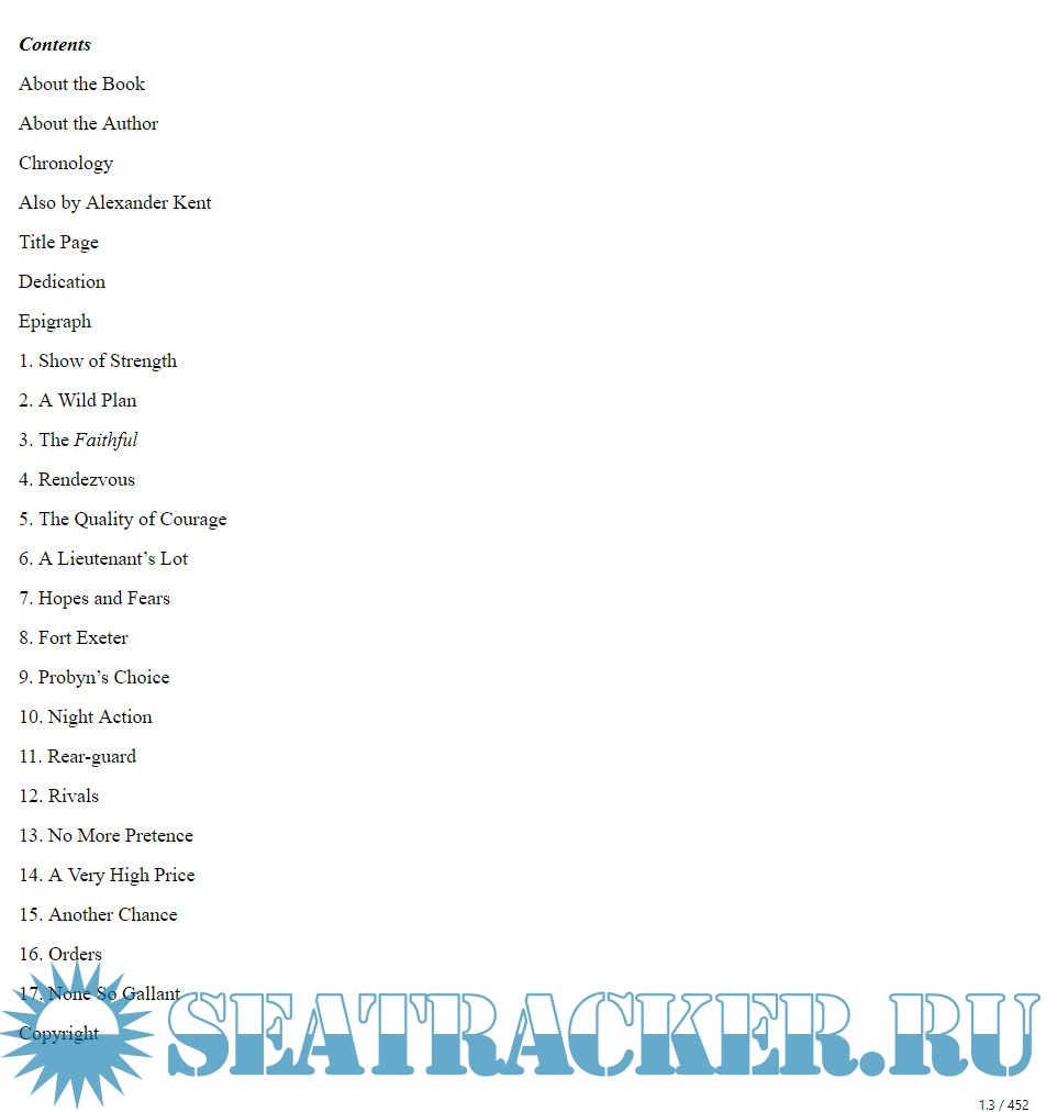 Year: 2005 Language: english Author: Alexander Kent Genre: Fiction Publisher: Arrow Books Version: 1.0 ISBN: 9781407097107 Format: EPUB Quality: eBook Pages count: 452 Description: The revolution in America has erupted into a full-scale war. Richard Bolitho is a young lieutenant aboard the Trojan, an eighty-gun ship of the line. The navy’s main task is to prevent military supplies from reaching Washington’s armies and to destroy the fast-growing fleet of French and American privateers. At a time of shortages and sudden death even a lieutenant can find himself faced with major tasks and decisions. As the Trojan goes about her affairs the threat to Bolitho and his companions makes itself felt from New York to the Caribbean.