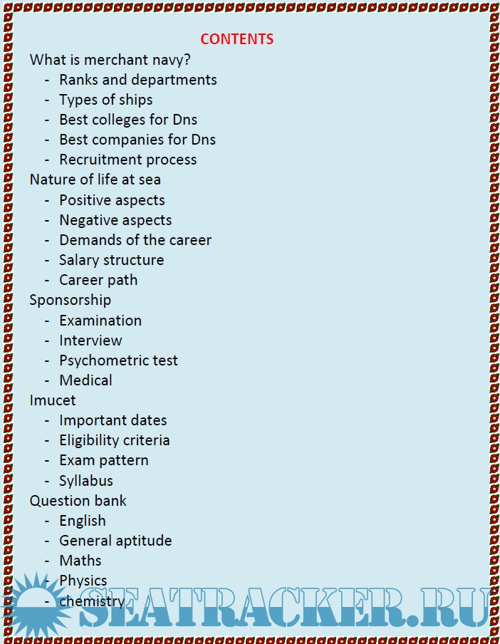 Includes interview questions for Sponsorship and Question bank for IMU-CET (Indian Maritime University Common Entrance Test)